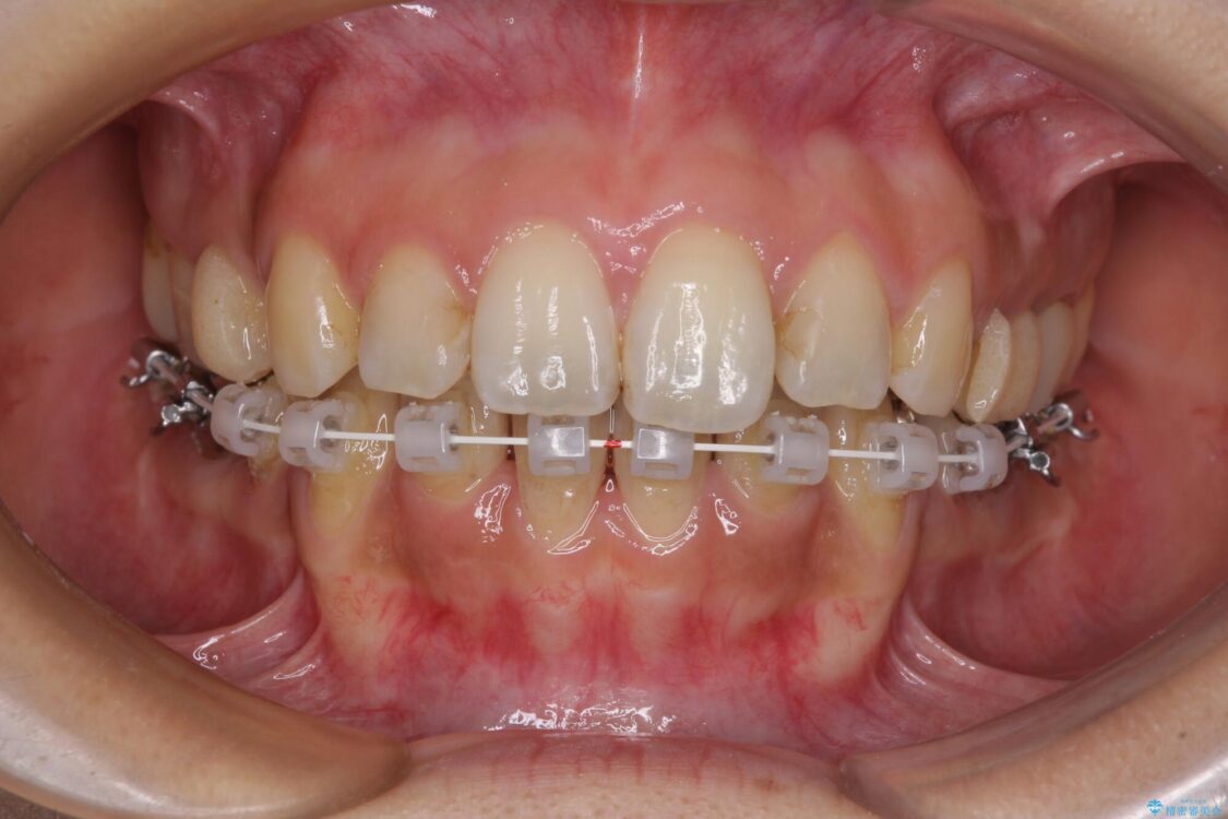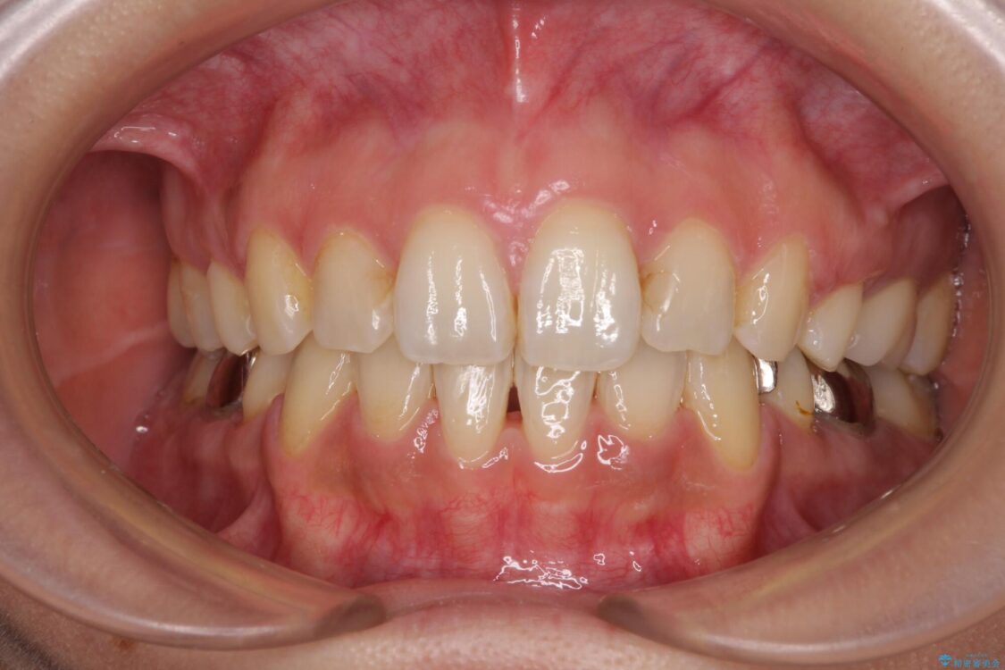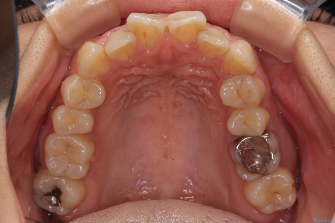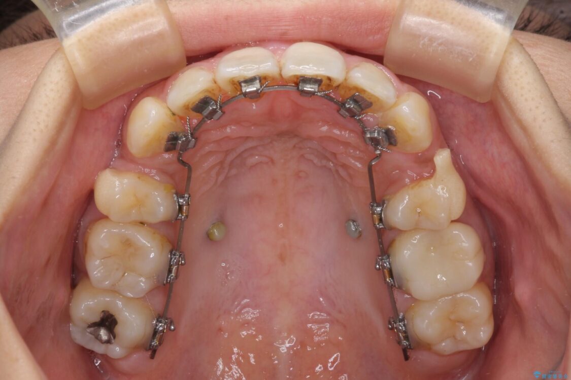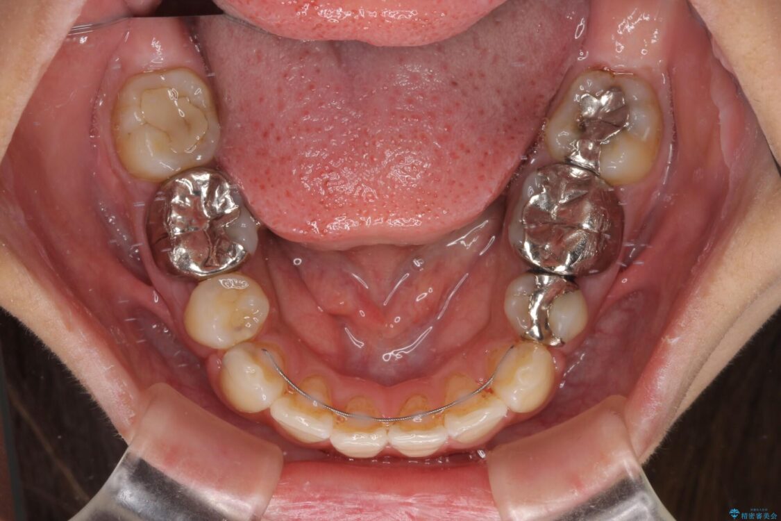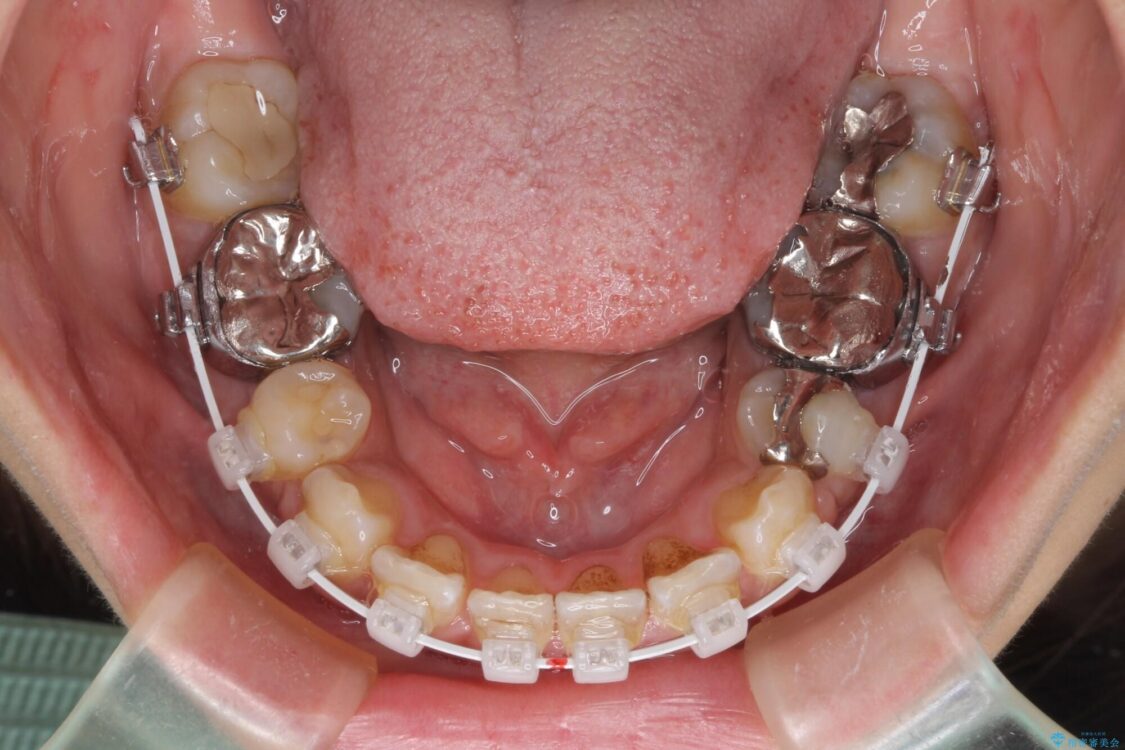 目立たない装置を希望されたので、上顎が裏側装置のハーフリンガルを選択し、上下左右の小臼歯(計4歯)を抜歯して矯正治療を行うこととしました。