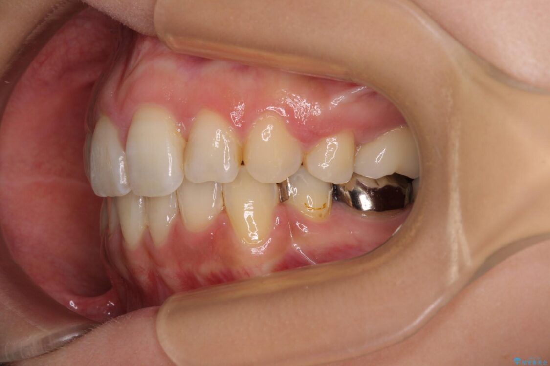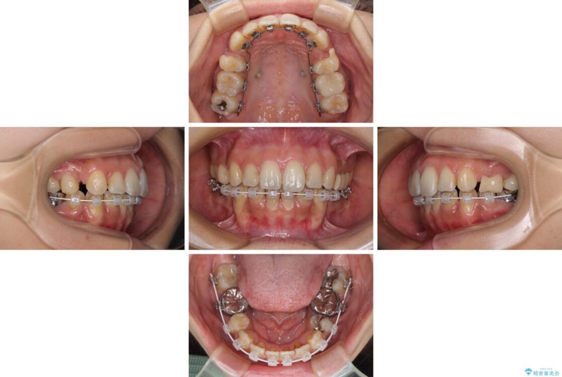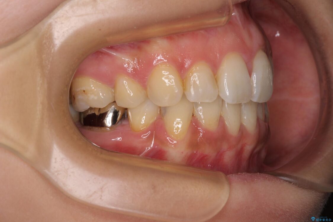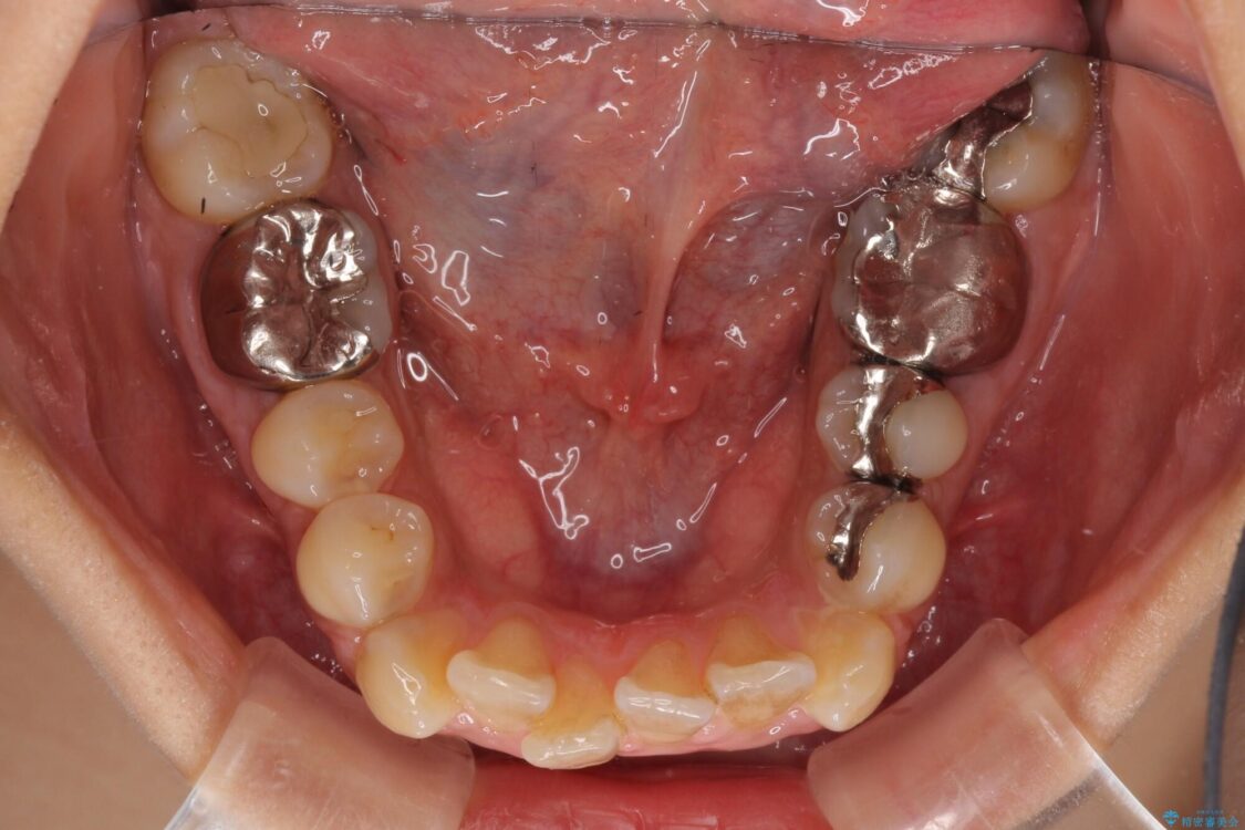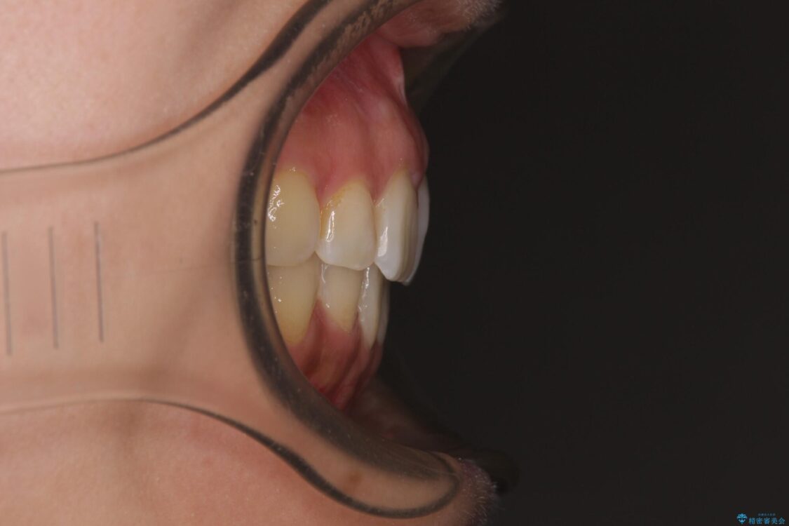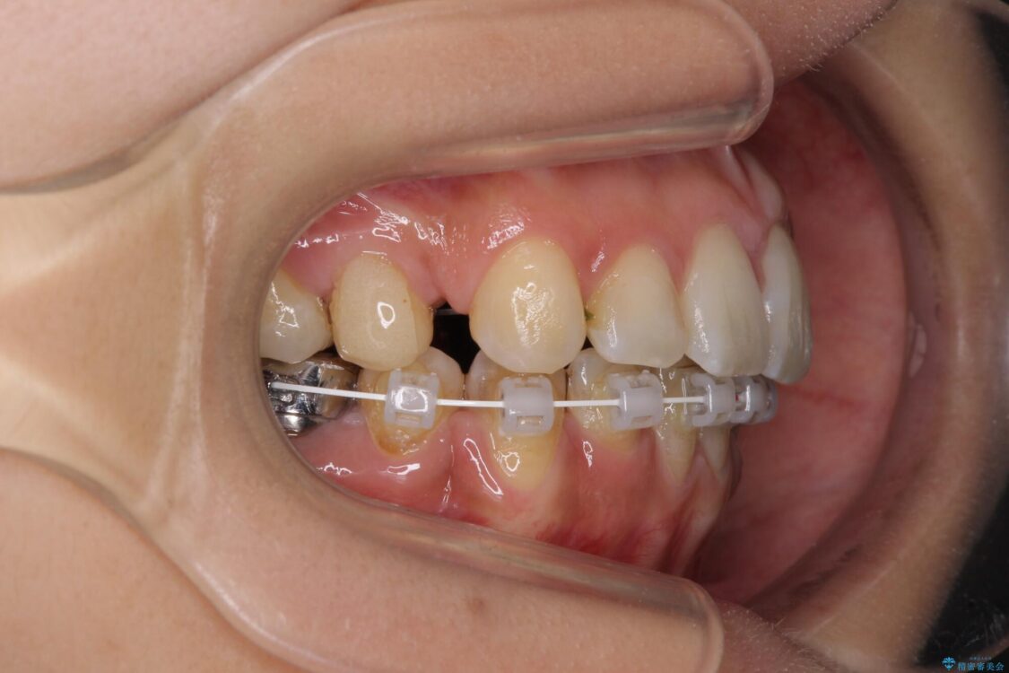 目立たない装置を希望されたので、上顎が裏側装置のハーフリンガルを選択し、上下左右の小臼歯(計4歯)を抜歯して矯正治療を行うこととしました。
