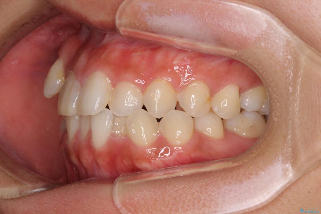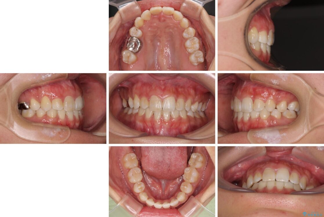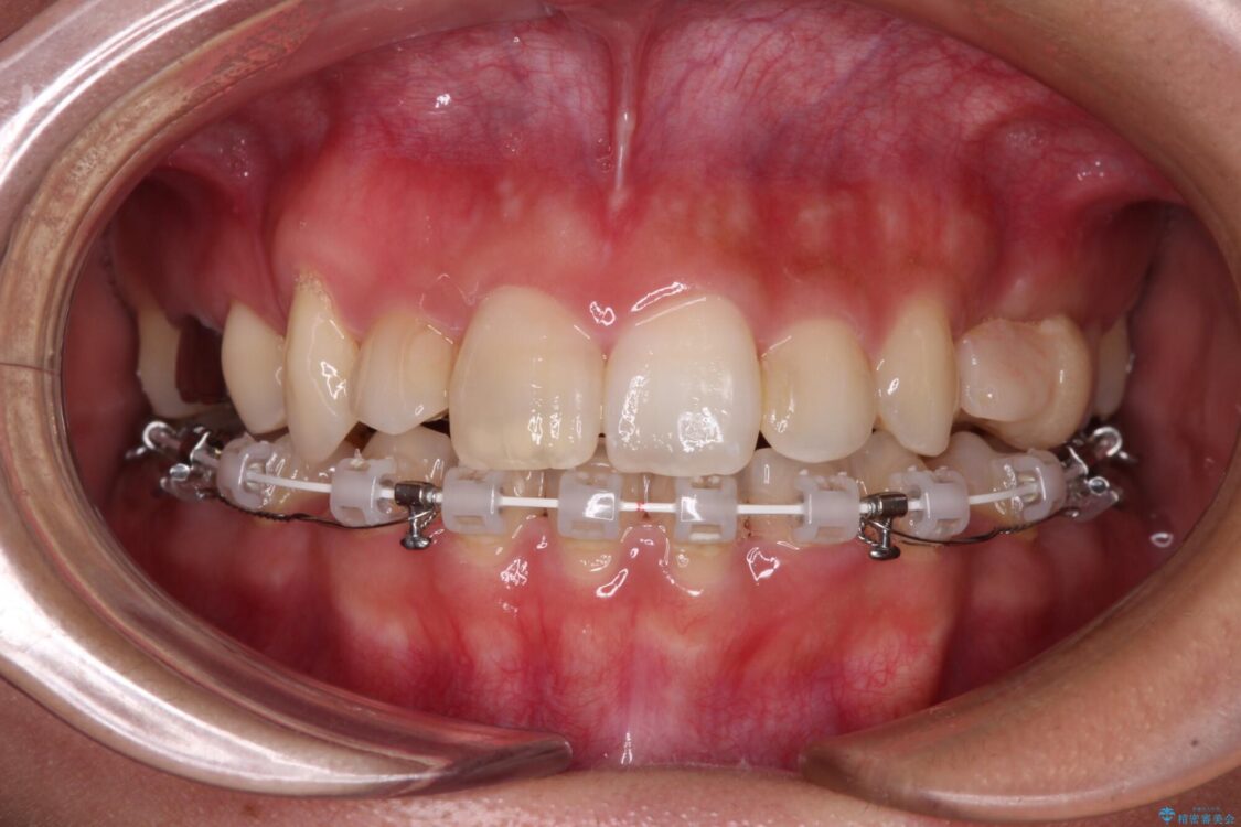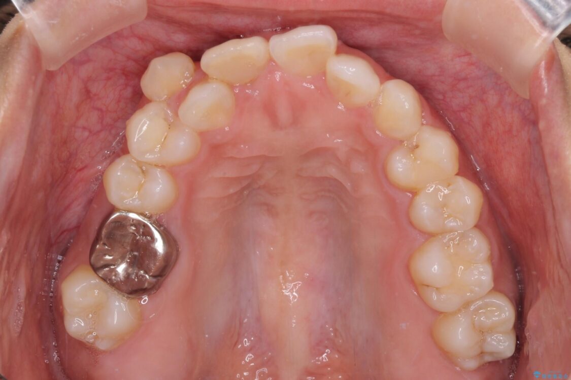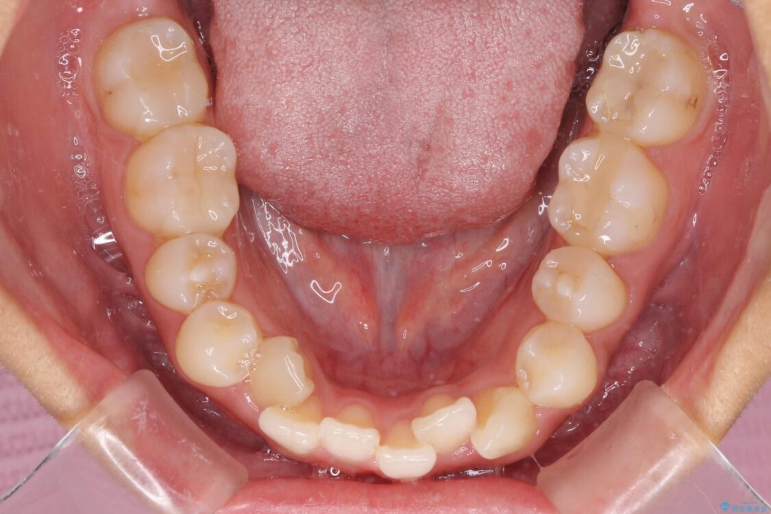目立たない装置を希望されたので、上顎が裏側装置のハーフリンガルを選択し、上下左右の小臼歯(計4歯)を抜歯して矯正治療を行うこととしました。