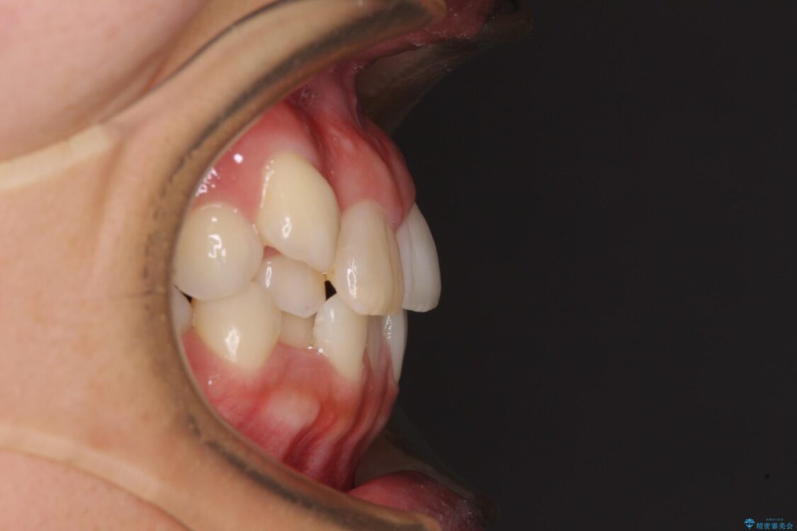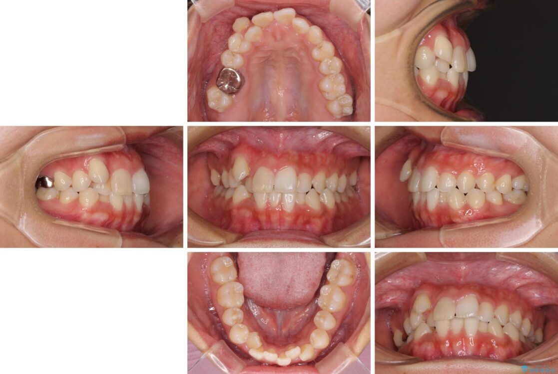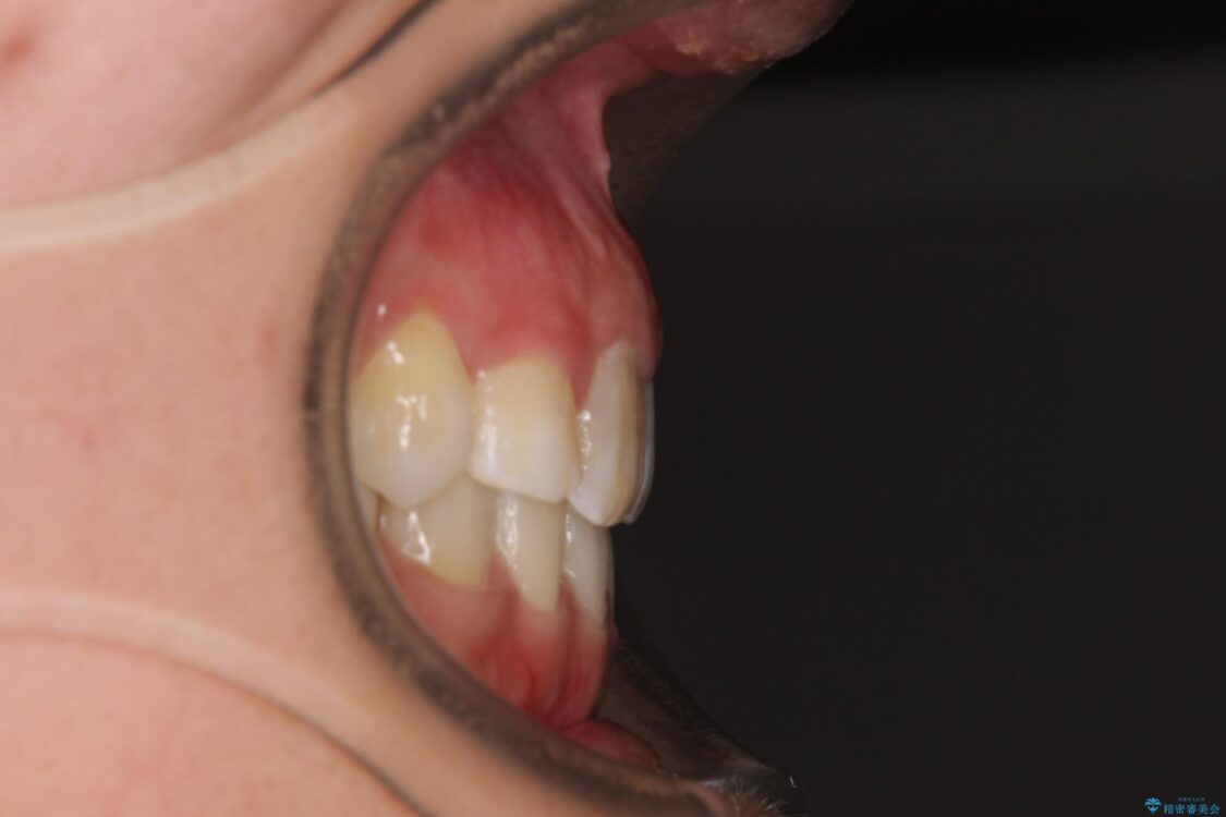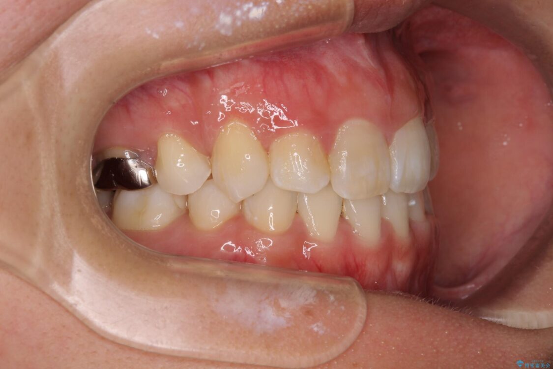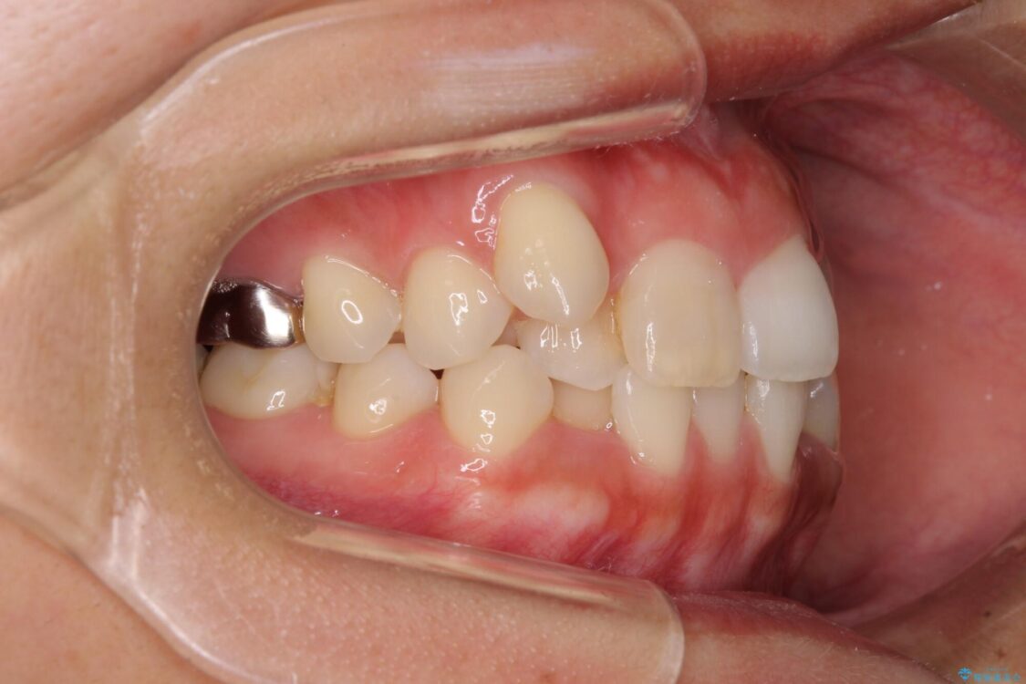 目立たない装置を希望されたので、上顎が裏側装置のハーフリンガルを選択し、上下左右の小臼歯(計4歯)を抜歯して矯正治療を行うこととしました。