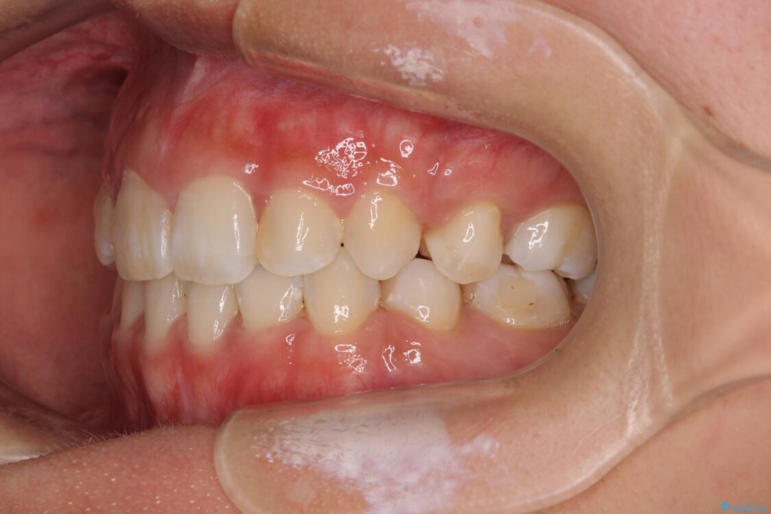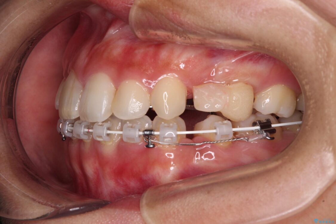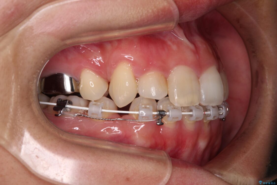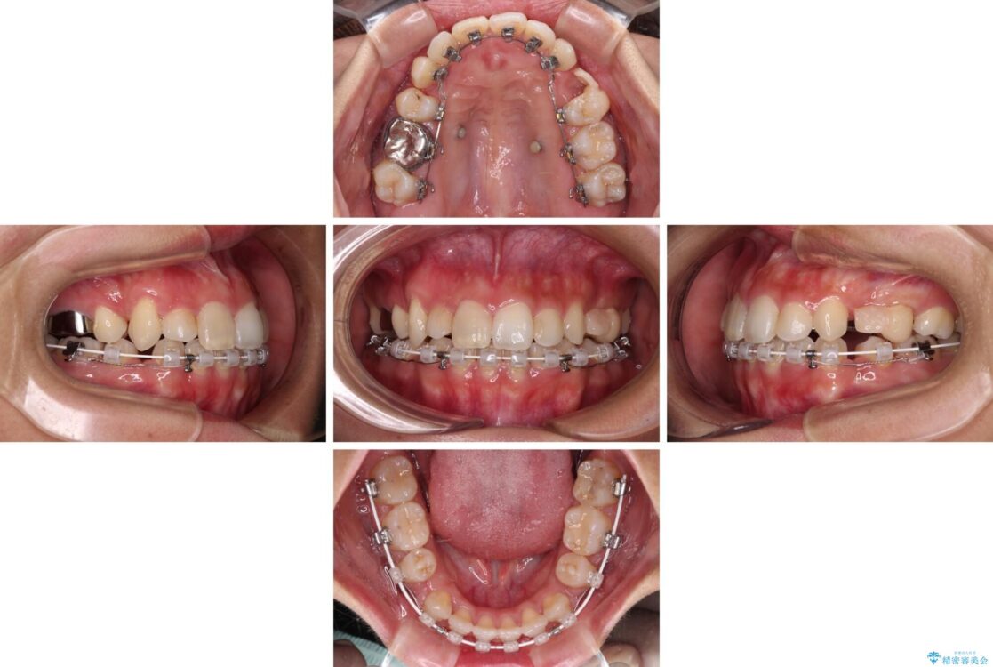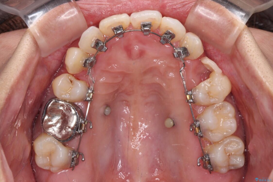 補助装置を用いて抜歯したスペースを速やかに閉じたことで、短期間での治療となりました。