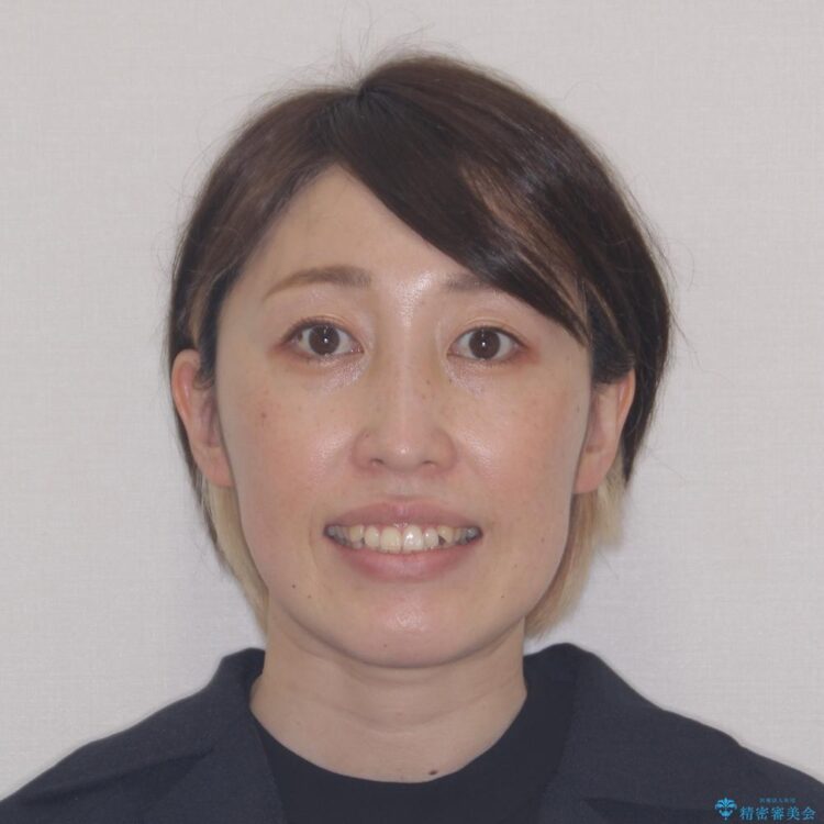 カリエールディスタライザーを併用したことで、すっきりとした口元になり、上下の正中を合わせることができました。