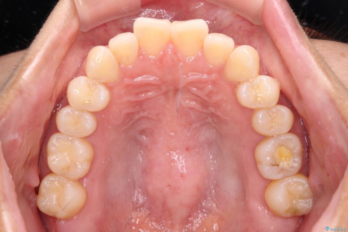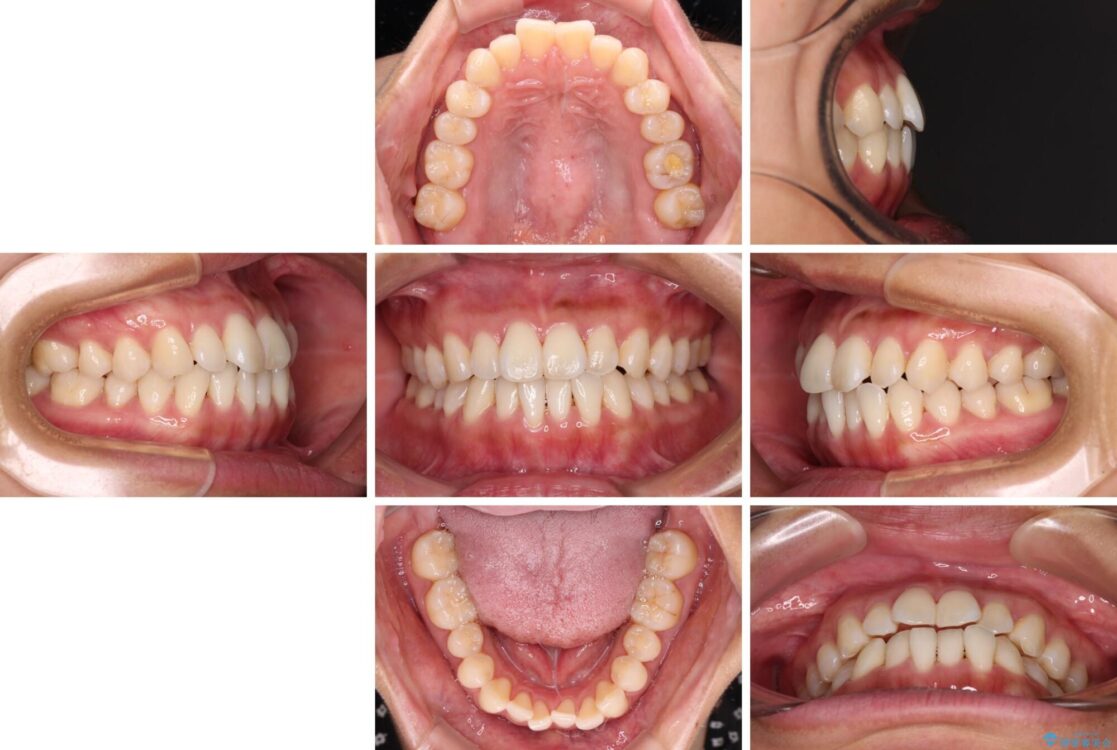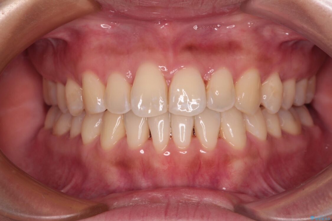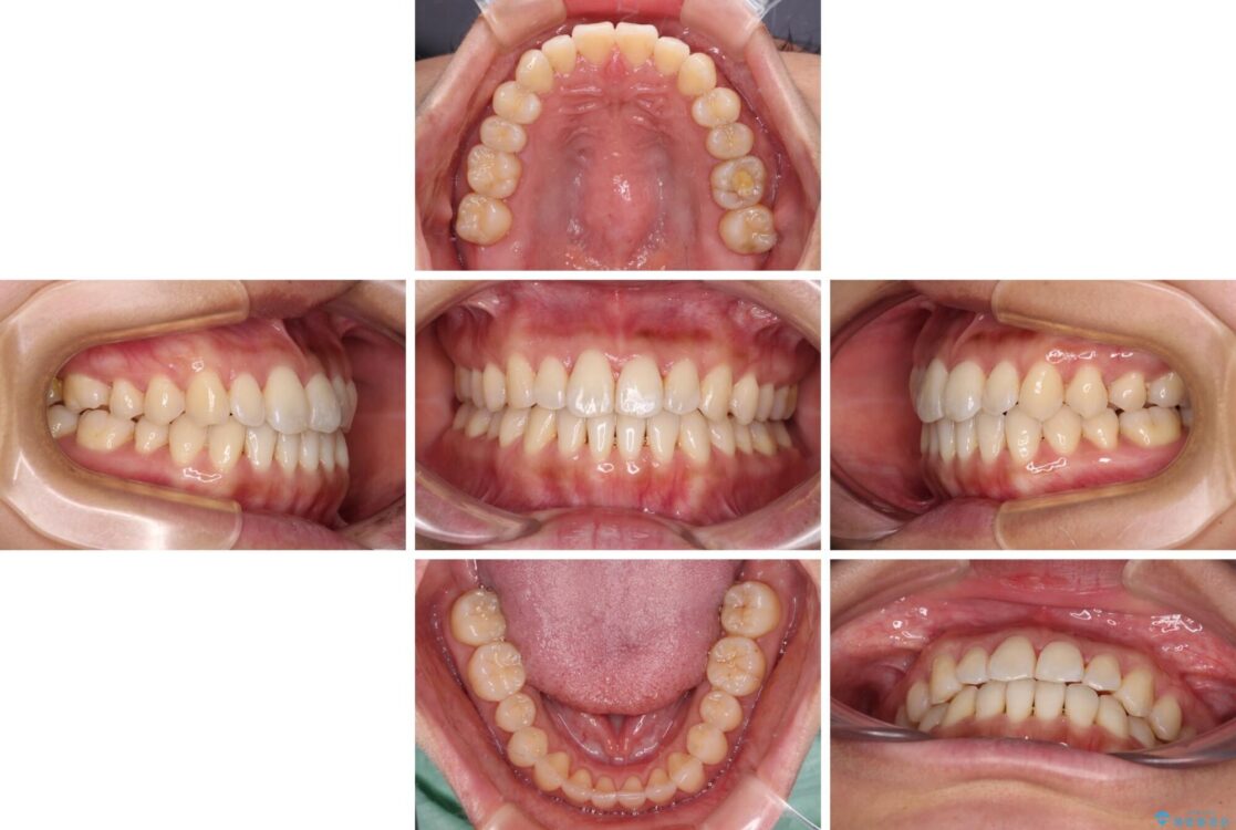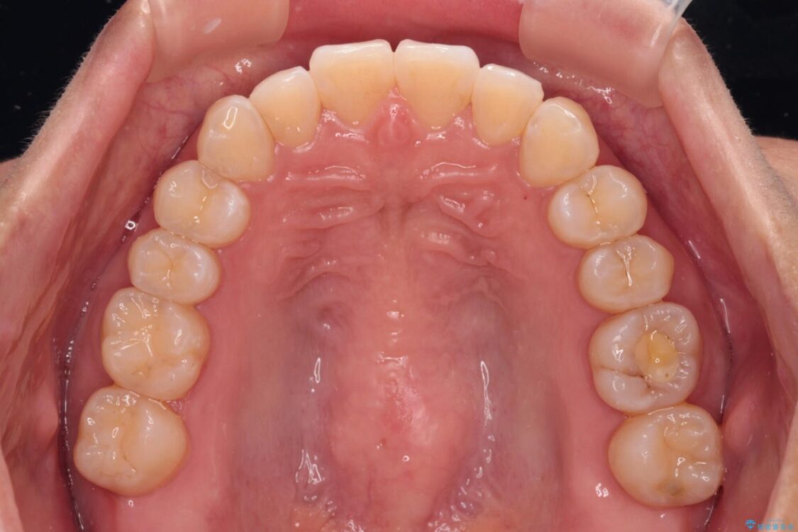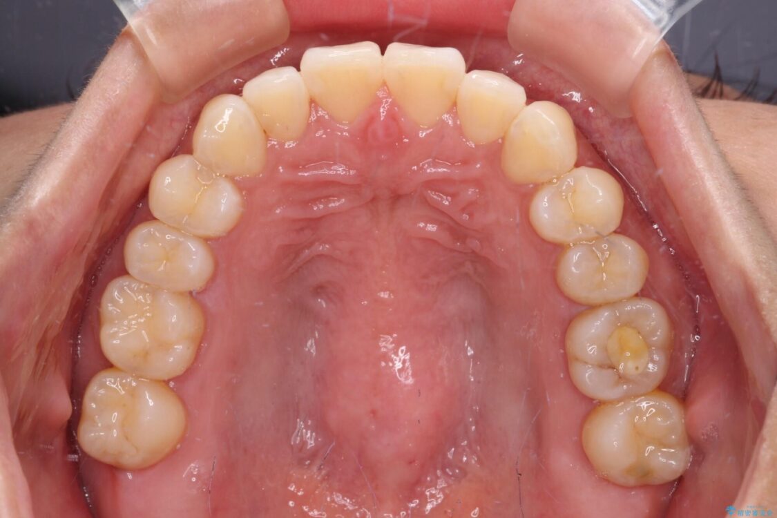 IPR(歯と歯の間を削る処置)によりスペースを獲得して上下顎前歯のデコボコを改善し、飛び出している前歯が引っ込むように設定し、インビザラインにて矯正治療を行うこととしました。
