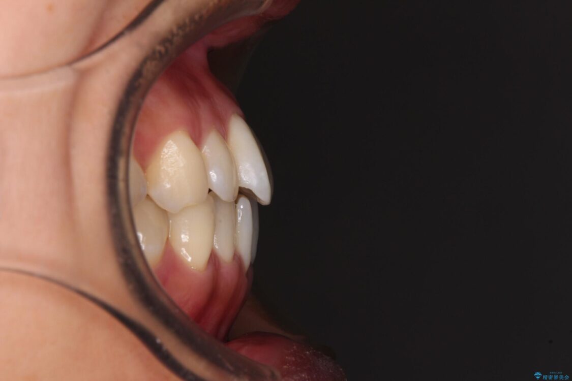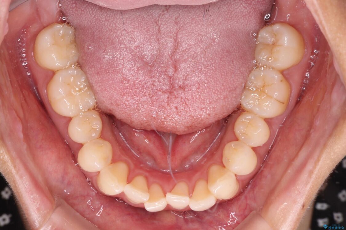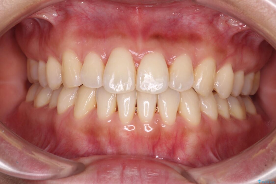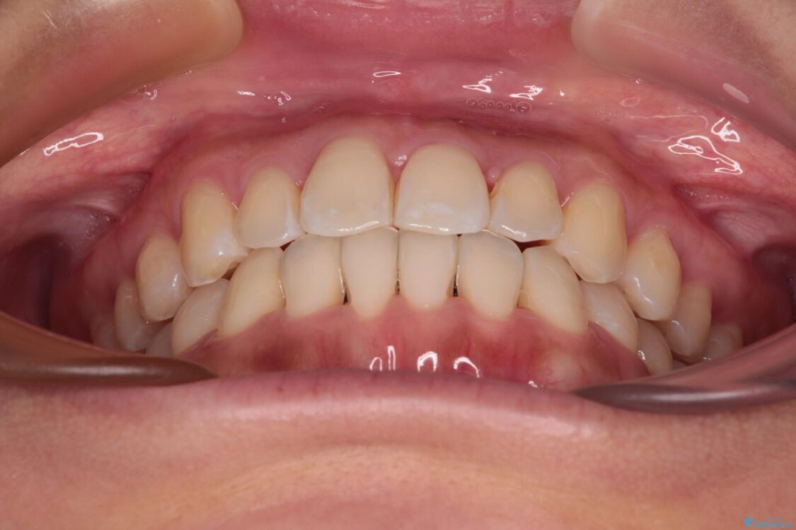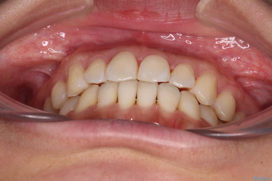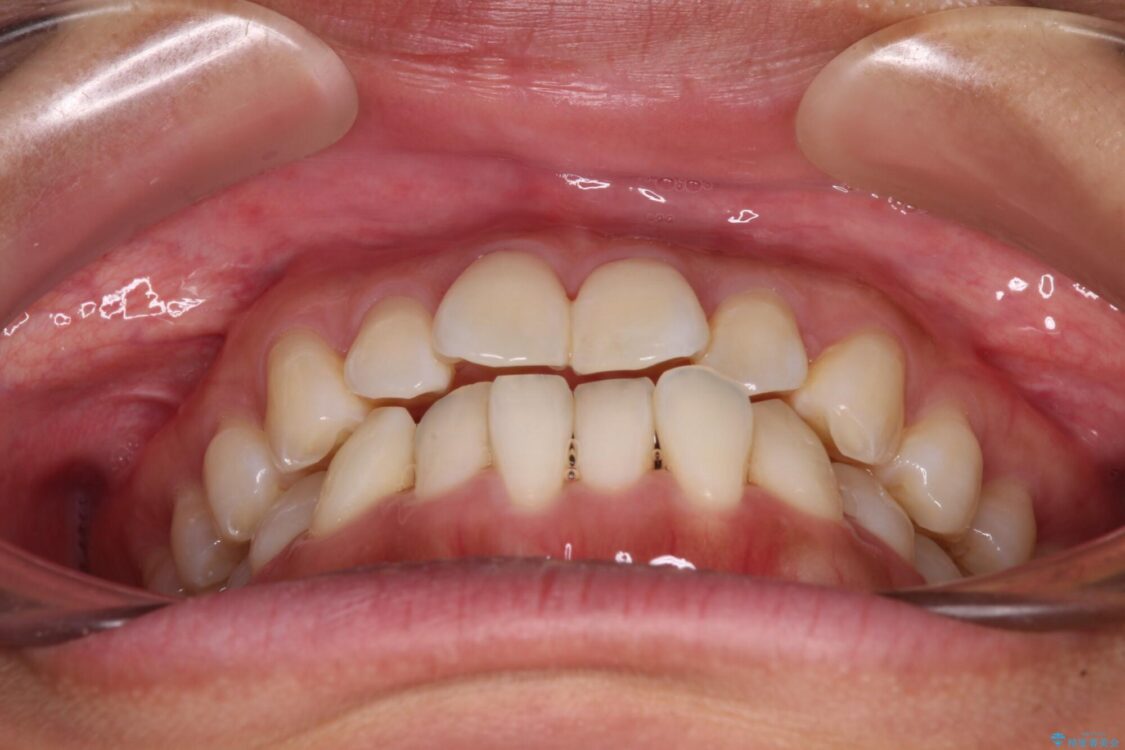 上顎前歯が捻れて前方に飛び出しており、下顎前歯もそれに沿うようにデコボコとなっていました。