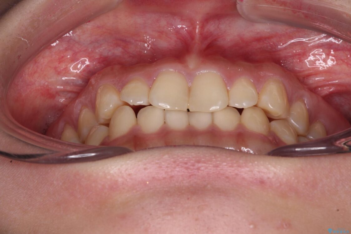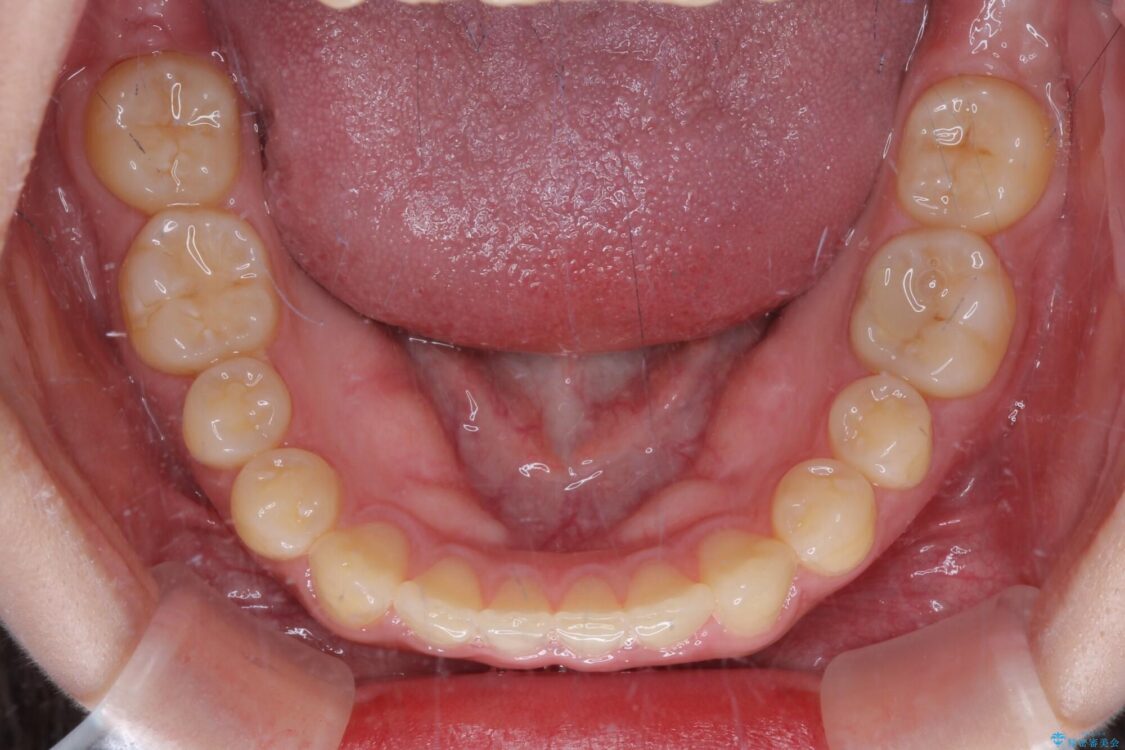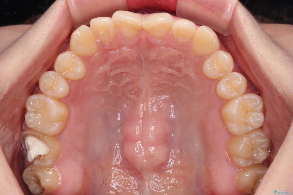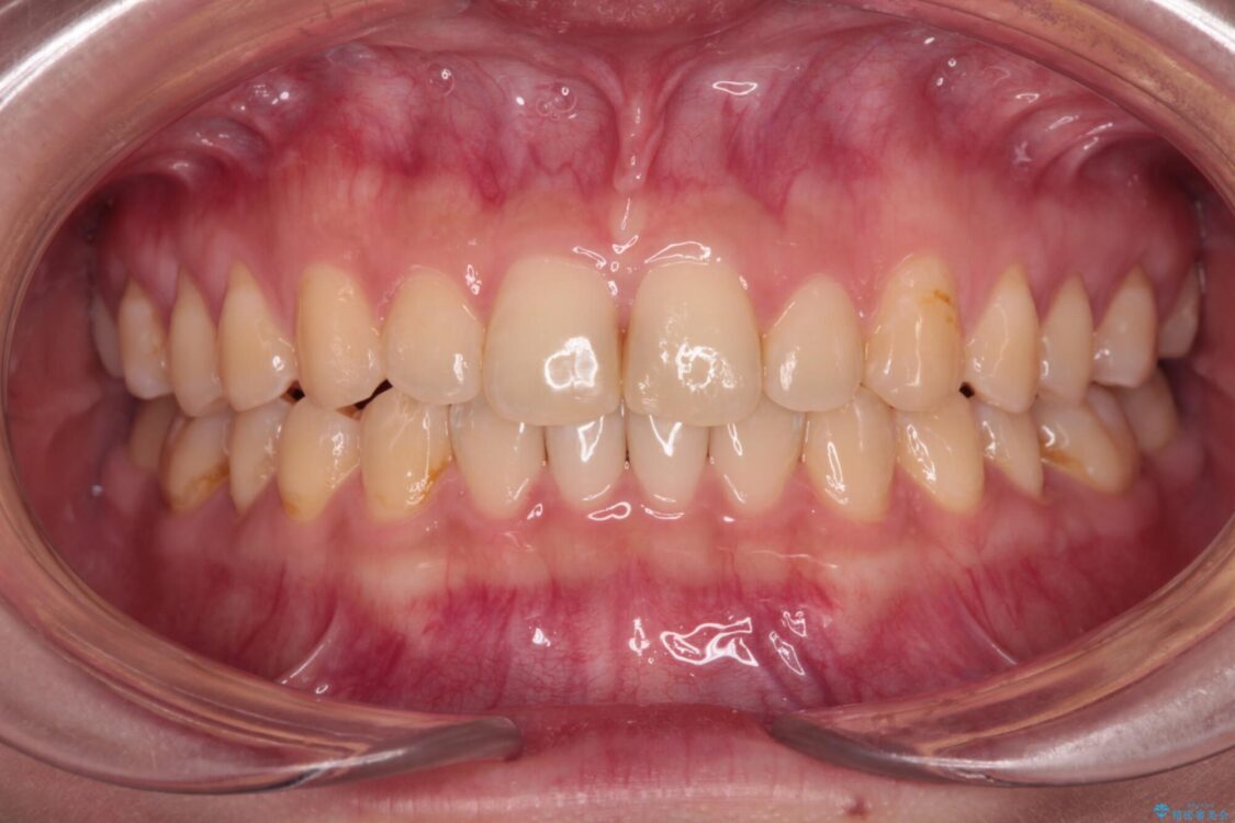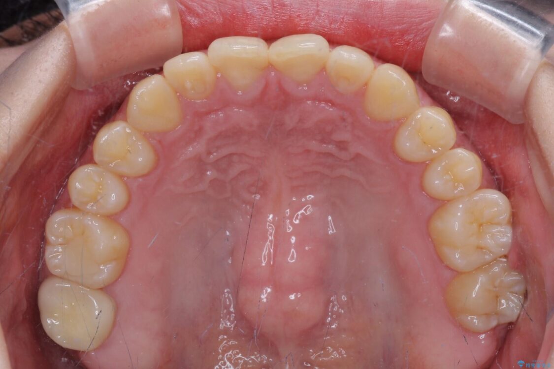 クラウンはよりよい咬み合わせで装着したいため、インビザラインを1セット使用して概ね歯列を整えた時点で補綴治療を行い、その後仕上げの矯正治療を行いました。