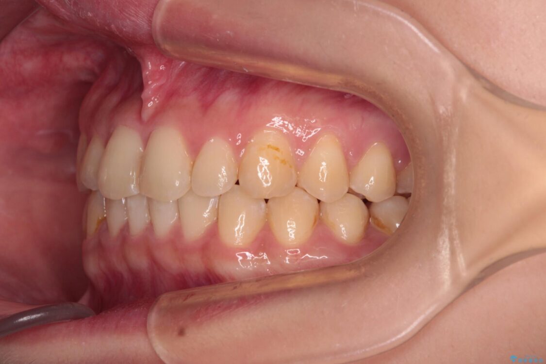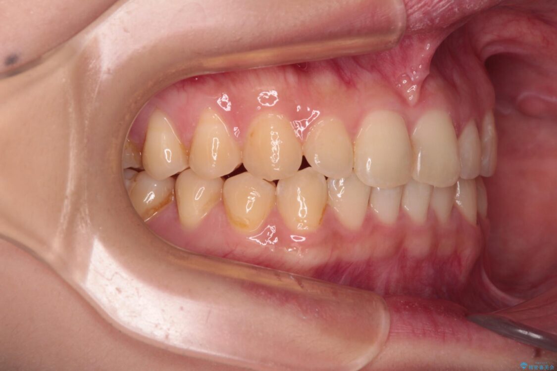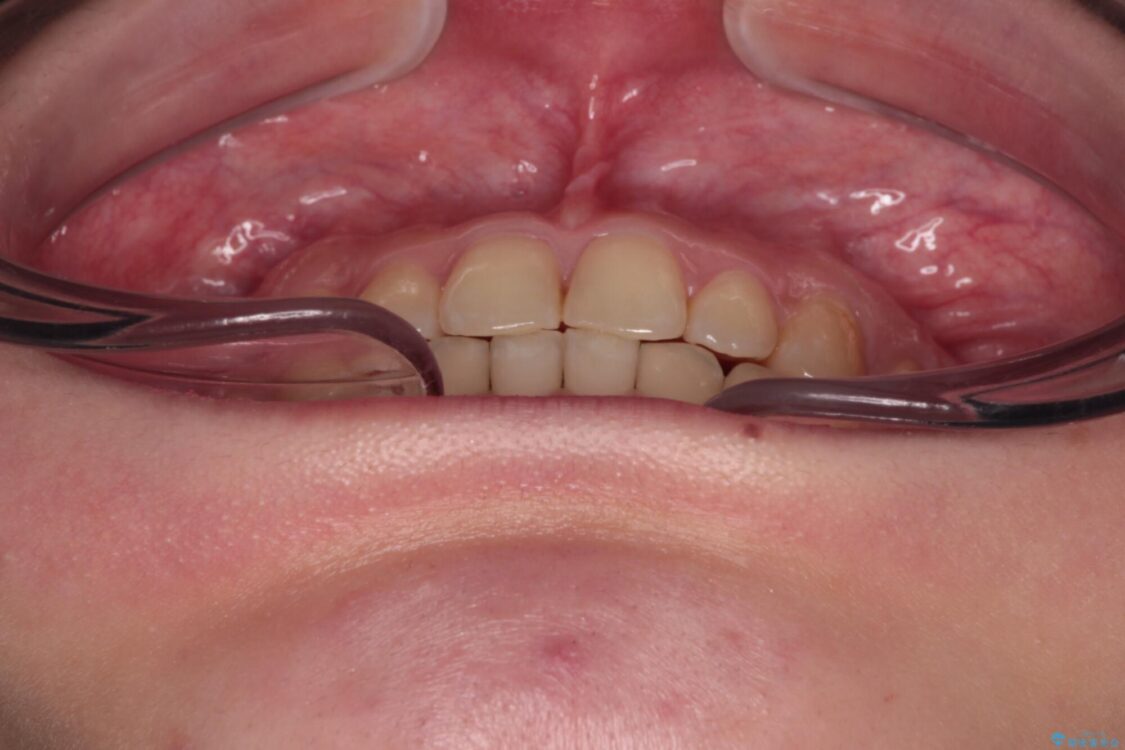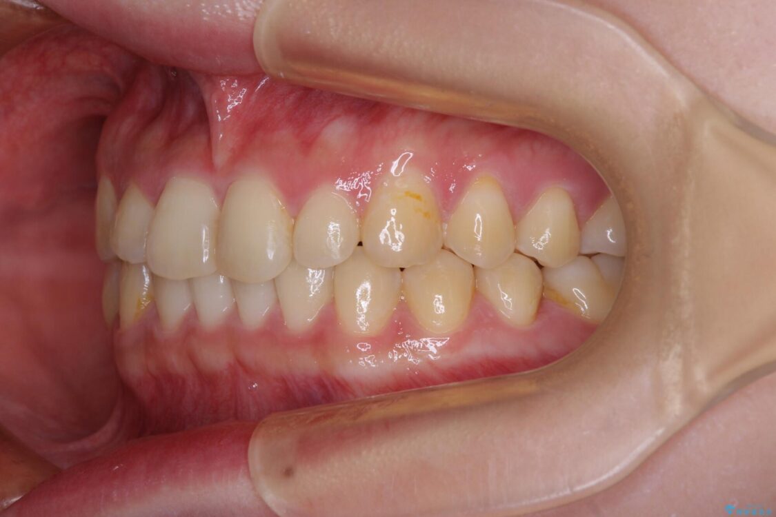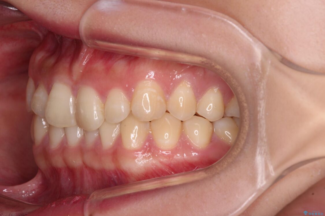 クラウンはよりよい咬み合わせで装着したいため、インビザラインを1セット使用して概ね歯列を整えた時点で補綴治療を行い、その後仕上げの矯正治療を行いました。