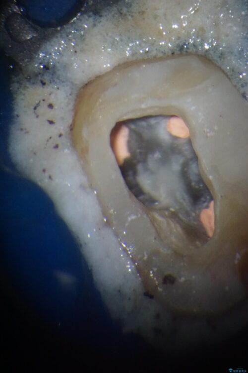 神経組織は壊死が始まっておりましたが、初回処置後には痛みを感じることもなくなり、2回目に無事に根管治療を終えることができました。