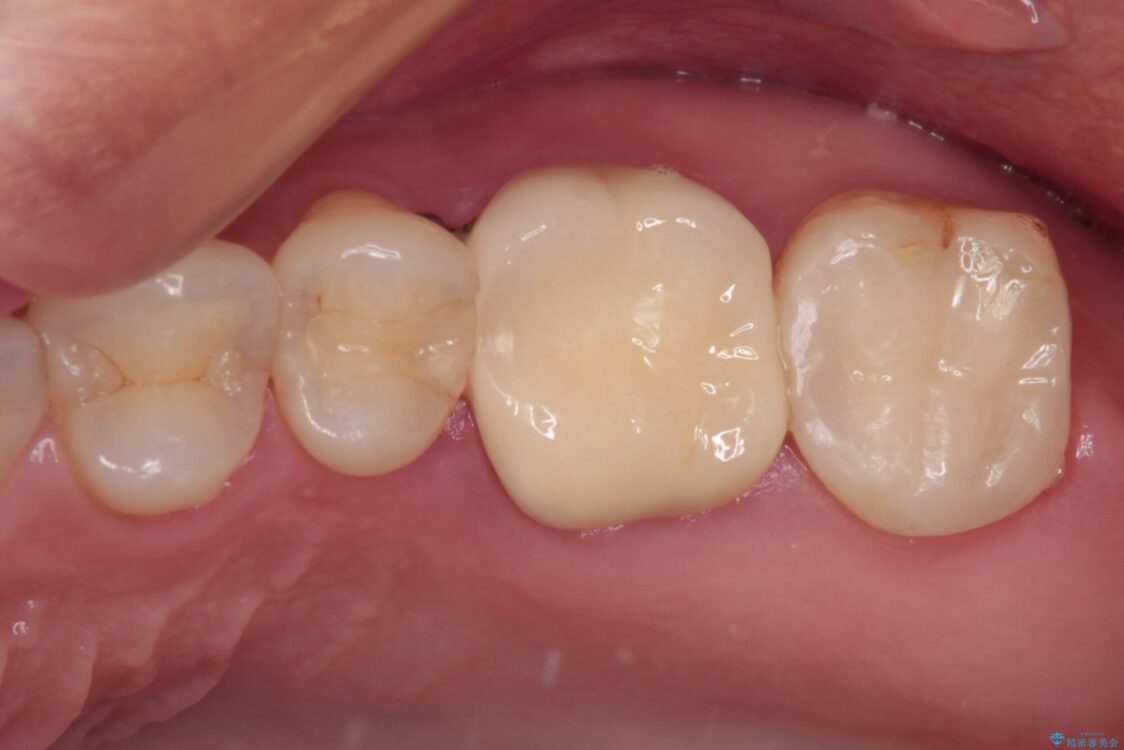 強い咬合力を負担する第一大臼歯であるため、根管治療後は速やかにオールセラミッククラウンにて補綴治療を行うこととしました。