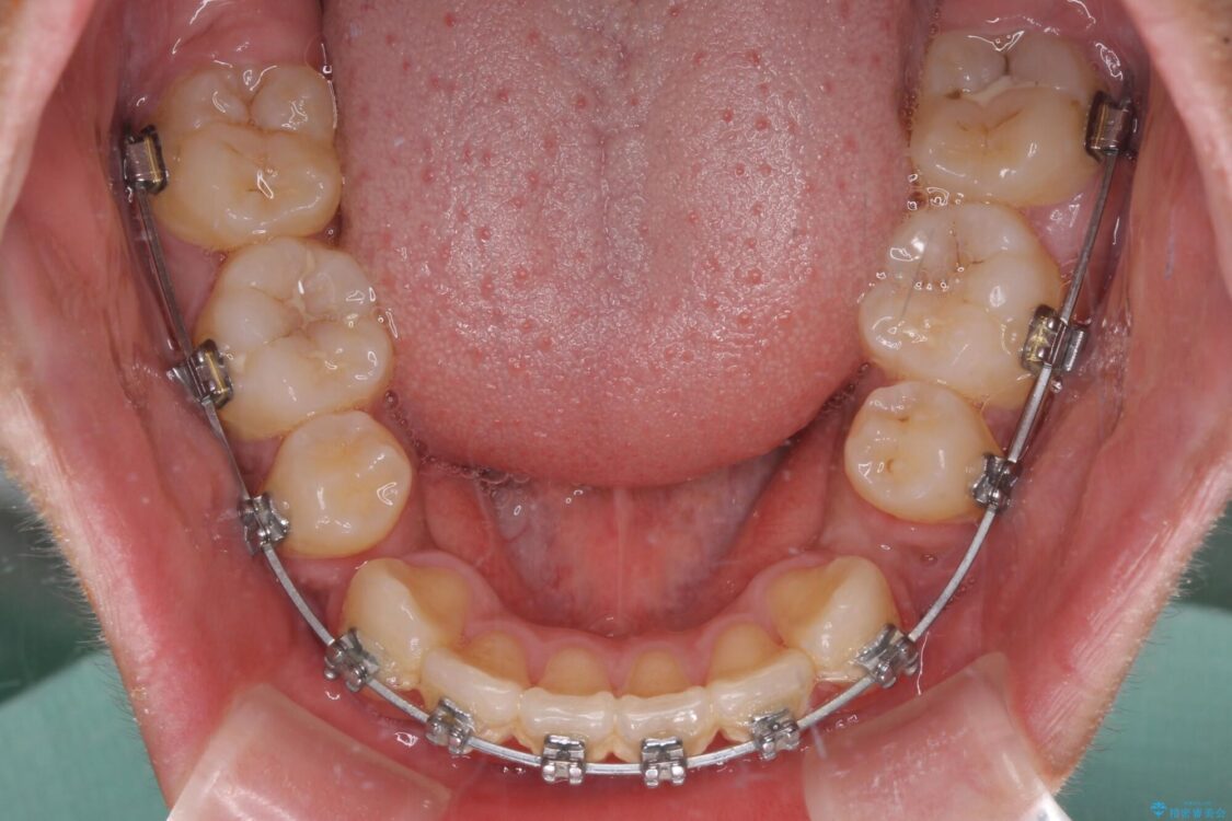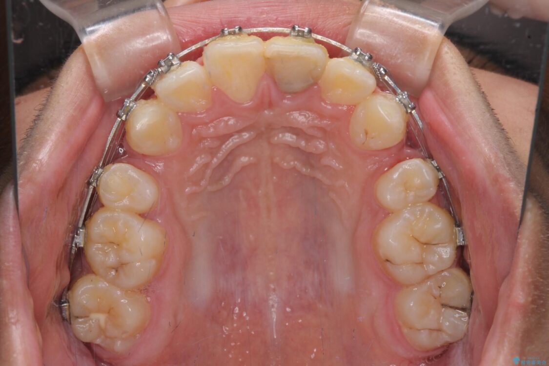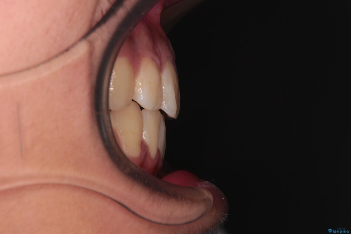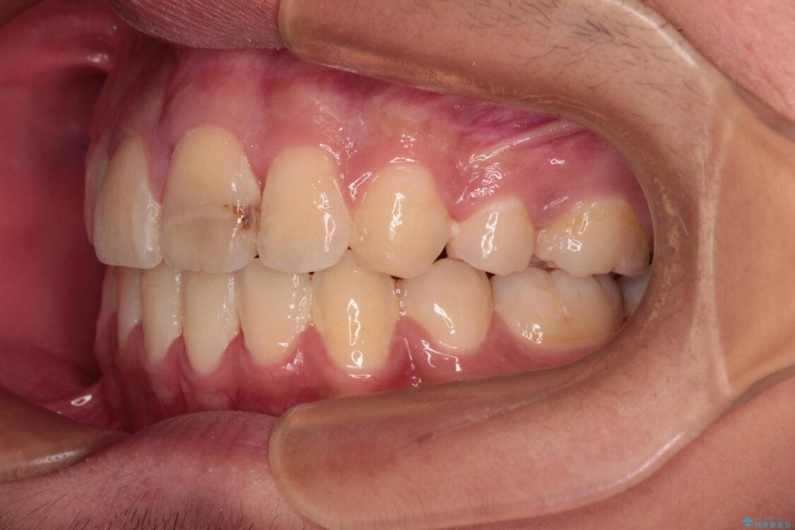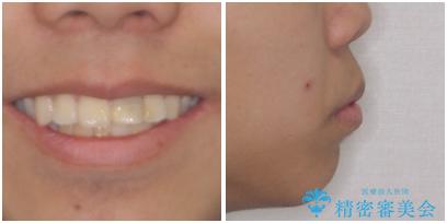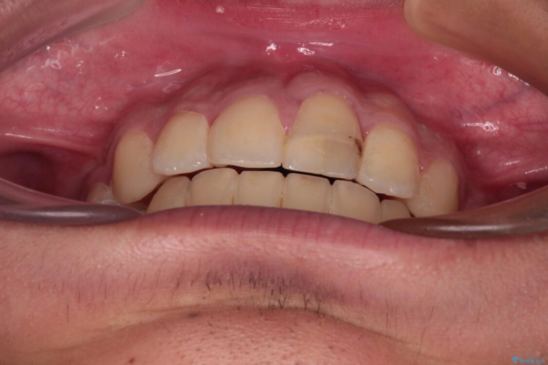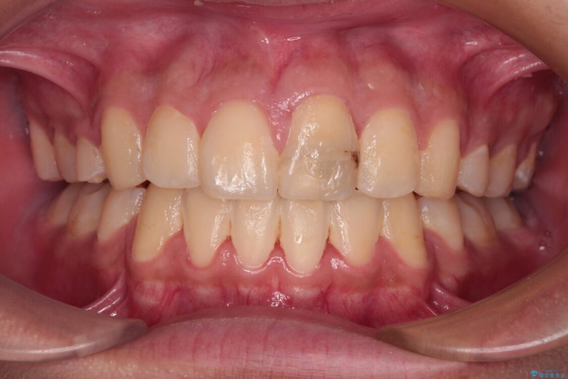 小学生の頃に上顎前歯をぶつけ、歯の一部が破損している状態であったので、歯根が歯槽骨と癒着して移動しない可能性がありましたが、無事に治療を終えることができました。