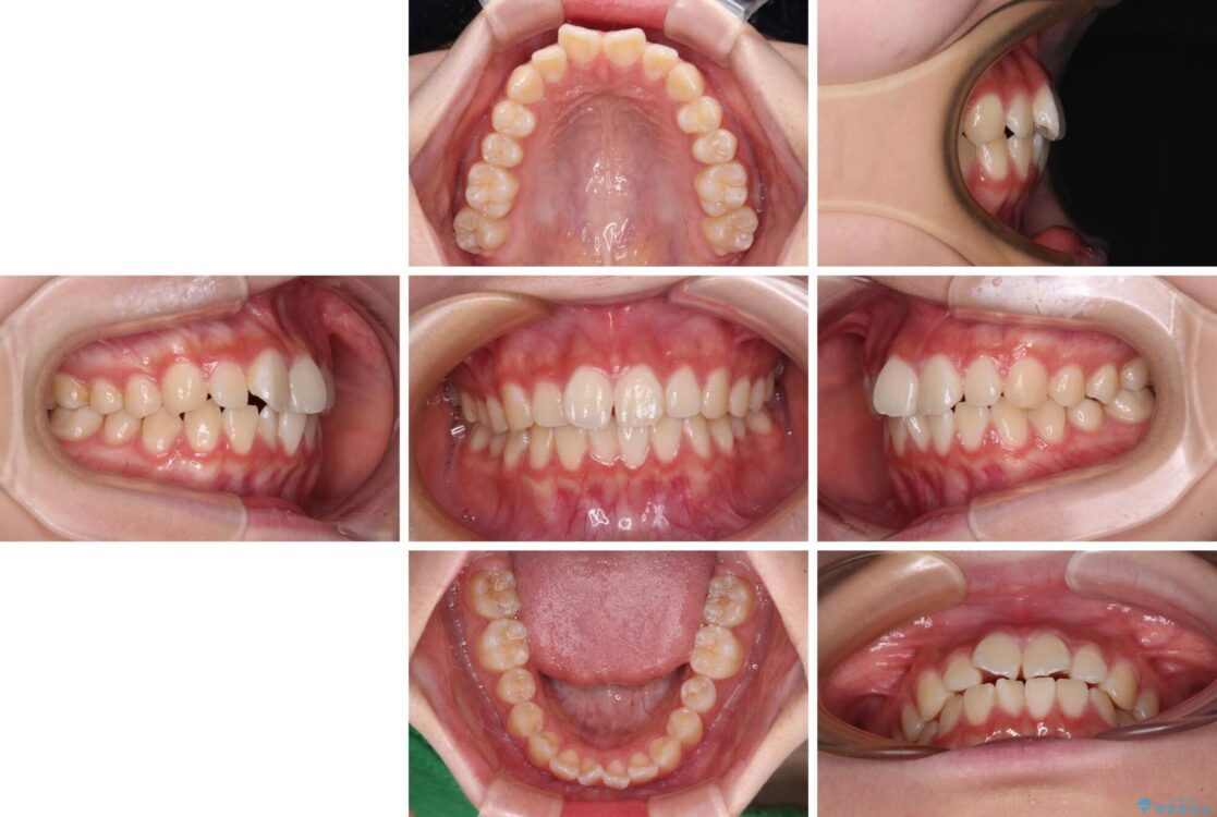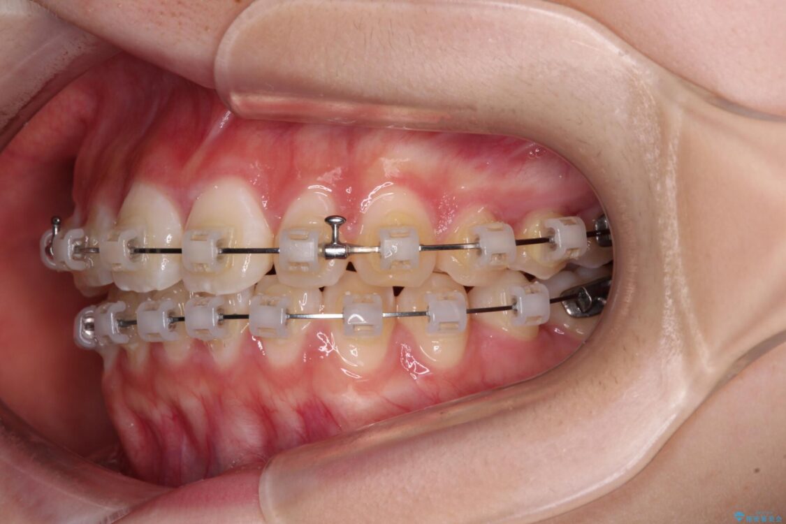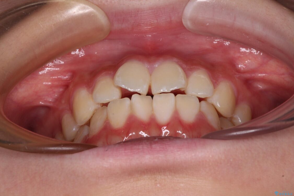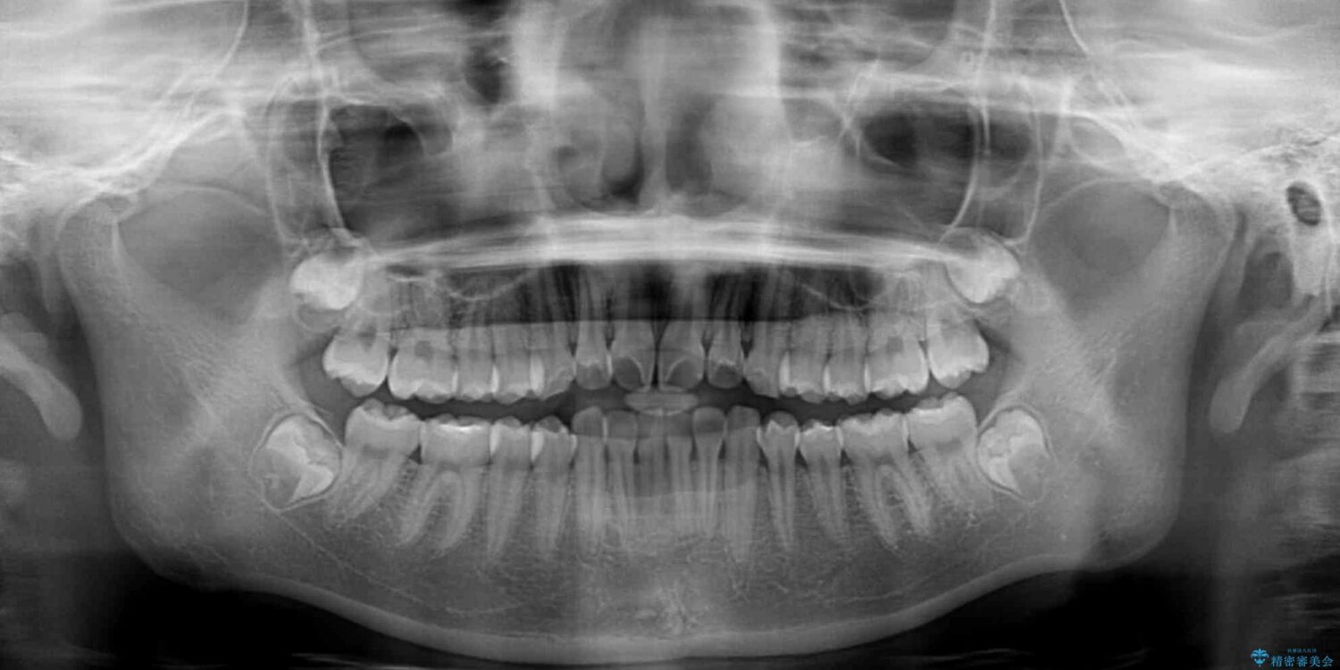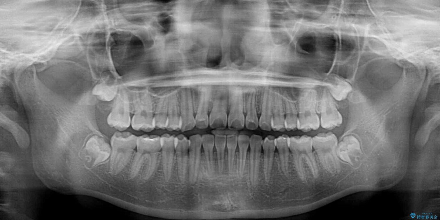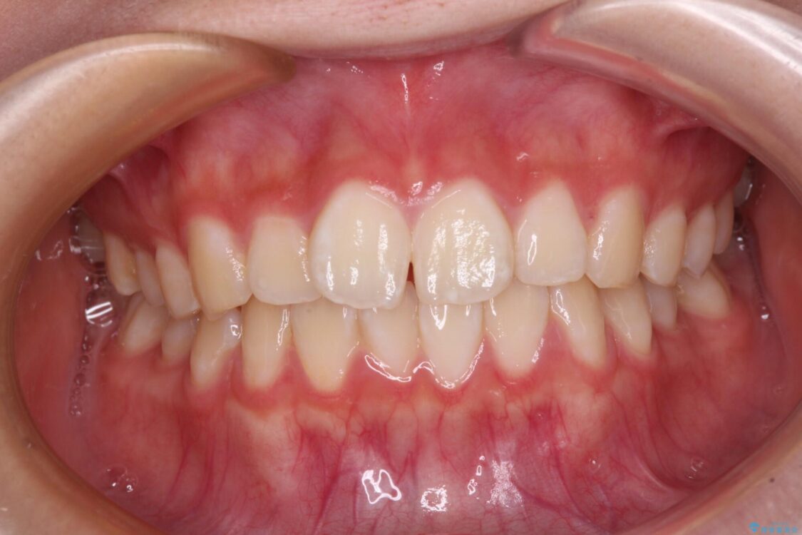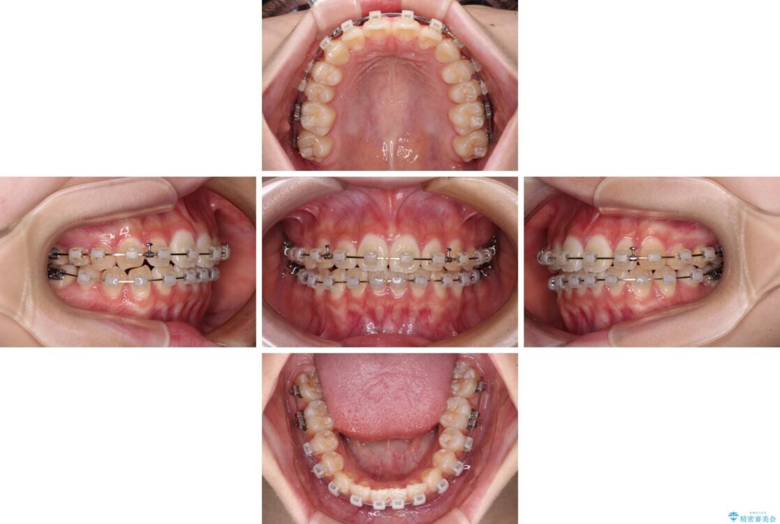 ワイヤー矯正でもマウスピース矯正でも対応可能でしたが、マウスピース矯正の自己管理が面倒であること、上顎前歯の捻転が著しいことから、ワイヤー矯正での治療を希望されました。