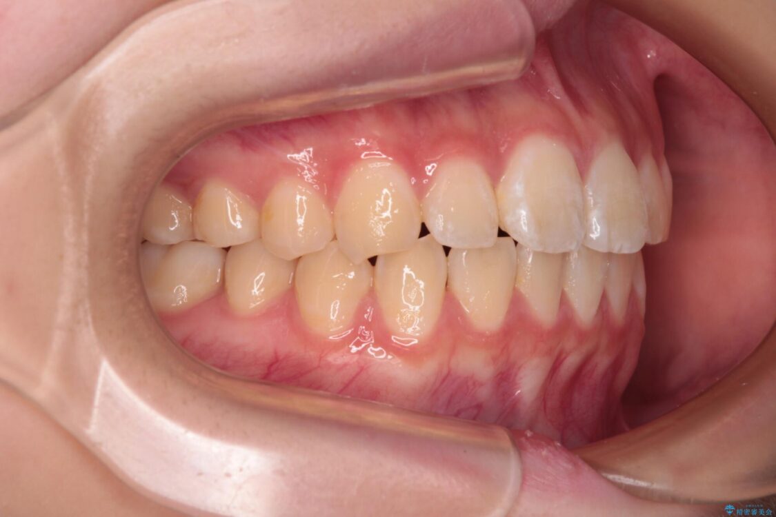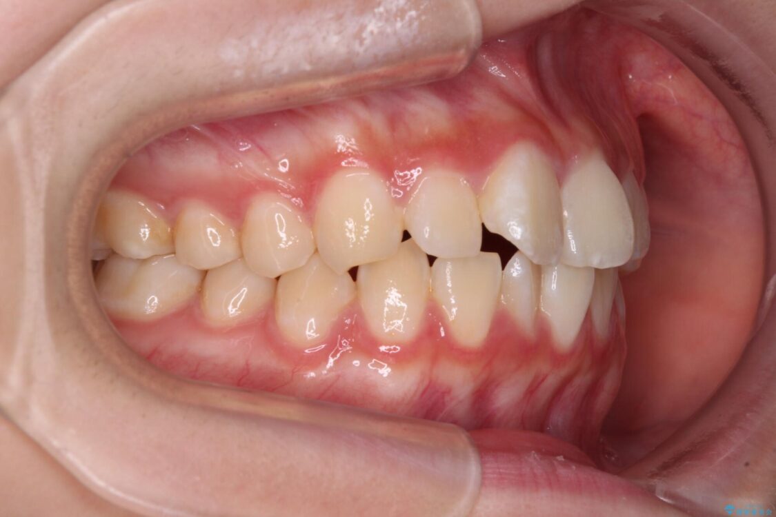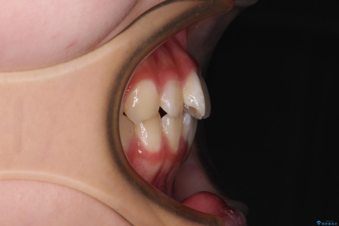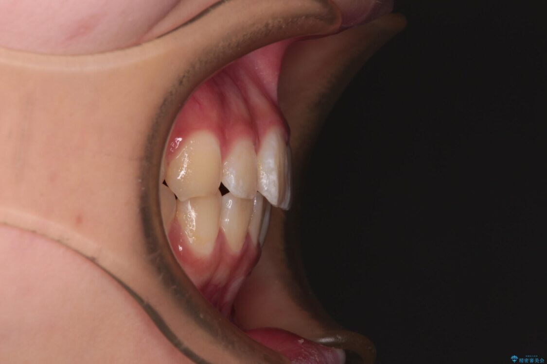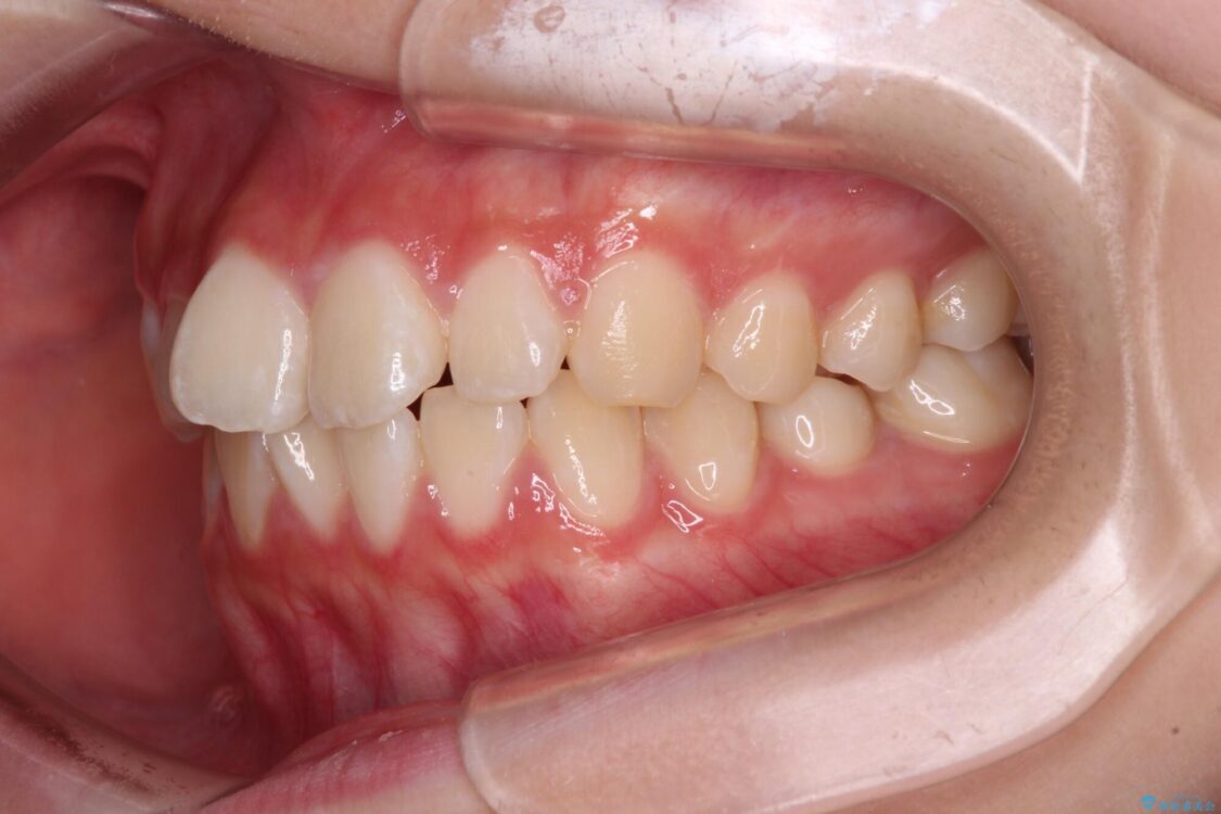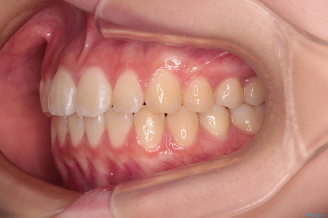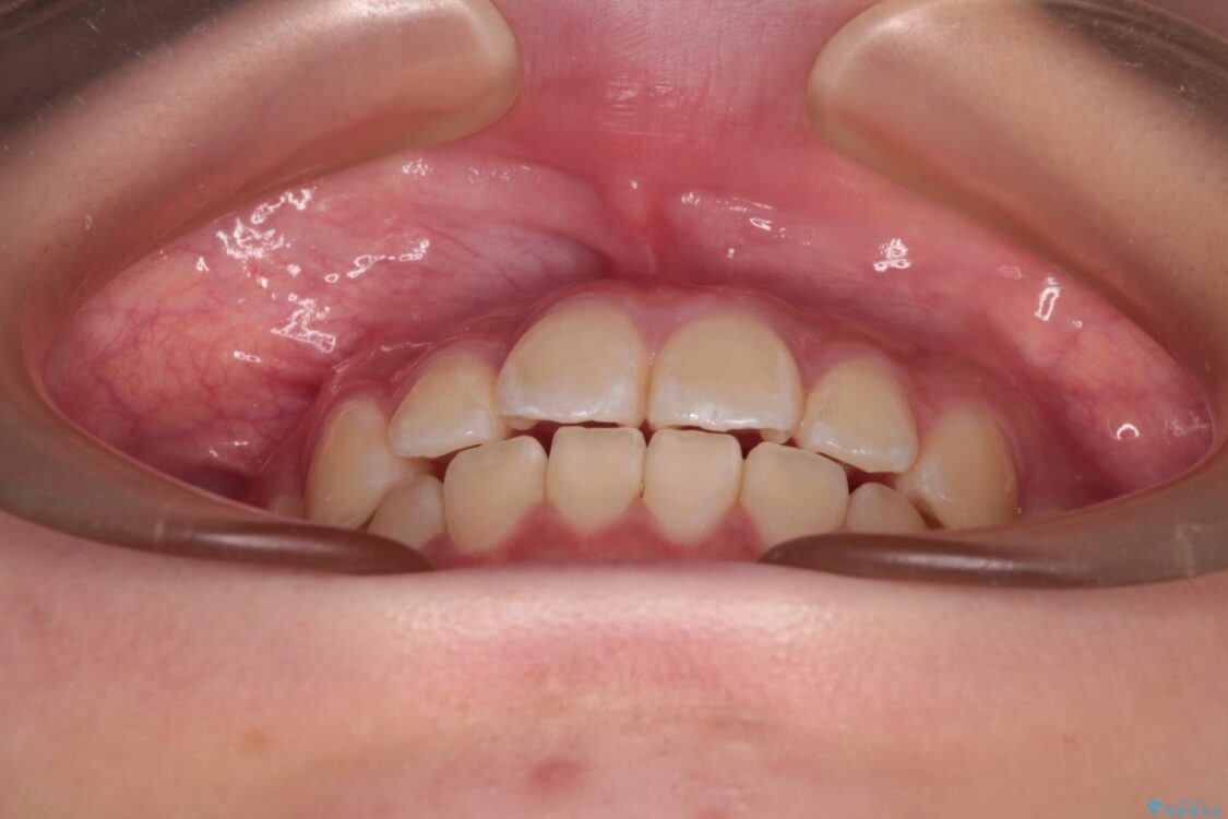 ワイヤー矯正でもマウスピース矯正でも対応可能でしたが、マウスピース矯正の自己管理が面倒であること、上顎前歯の捻転が著しいことから、ワイヤー矯正での治療を希望されました。