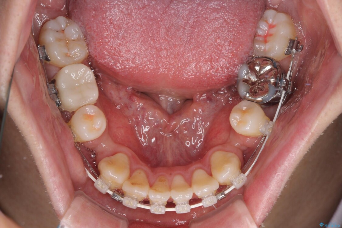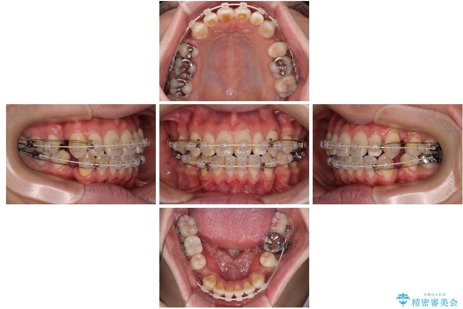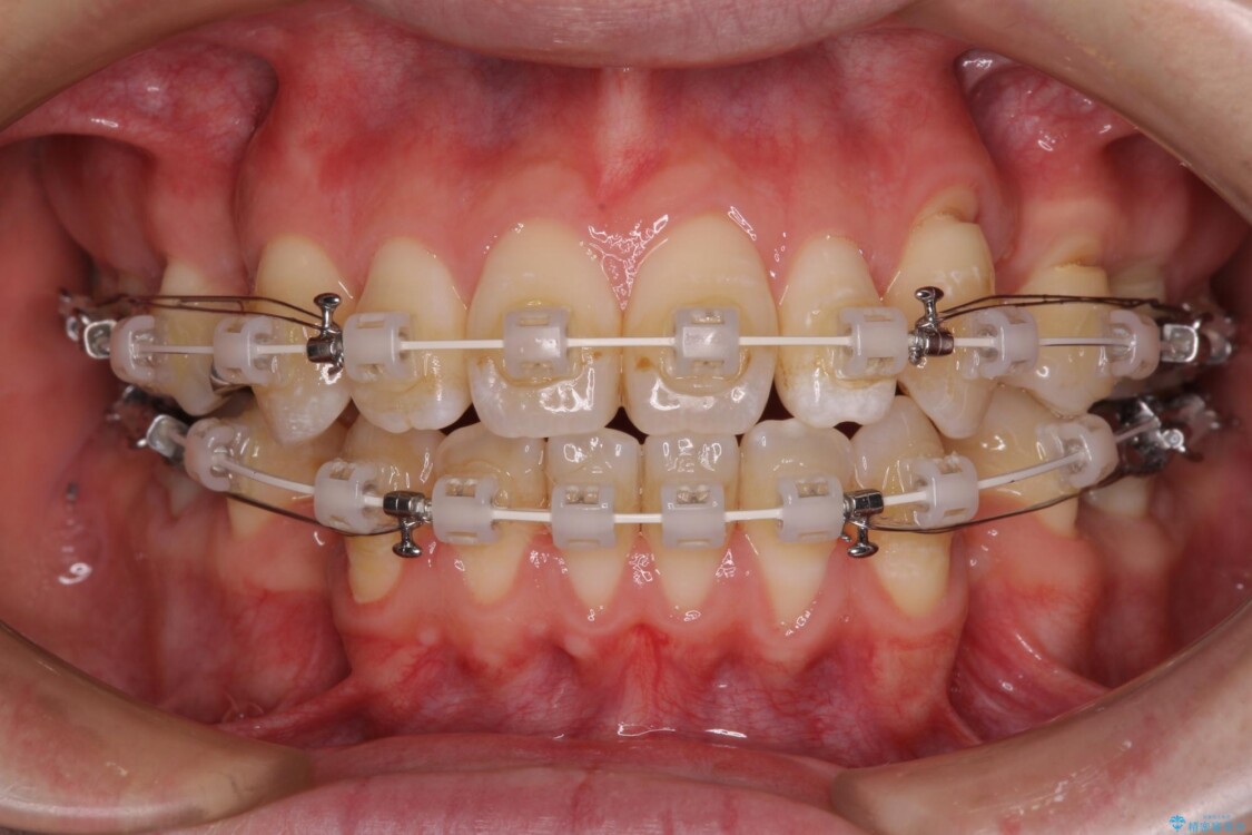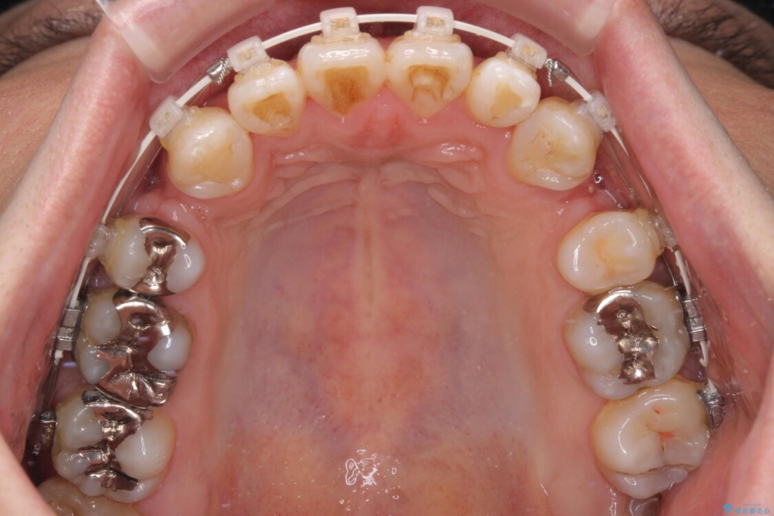 装置は、透明感のあるクリアブラケットとホワイトコーティングされたワイヤーを使用した、目立ちにくい審美装置を選択。