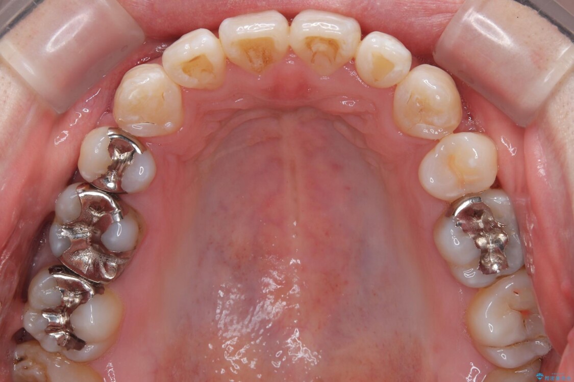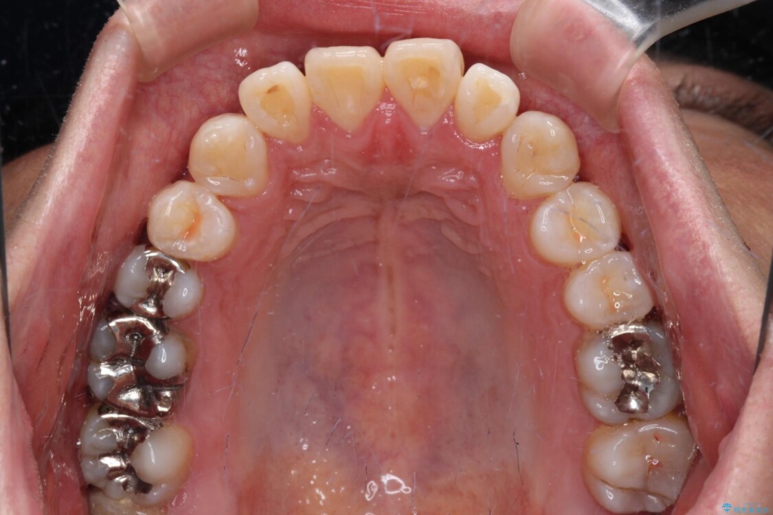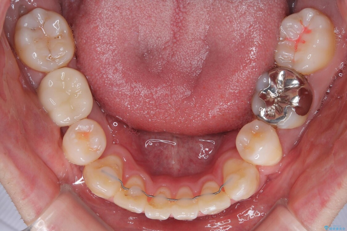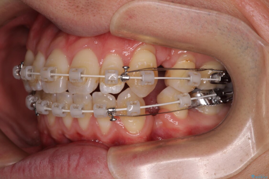装置は、透明感のあるクリアブラケットとホワイトコーティングされたワイヤーを使用した、目立ちにくい審美装置を選択。