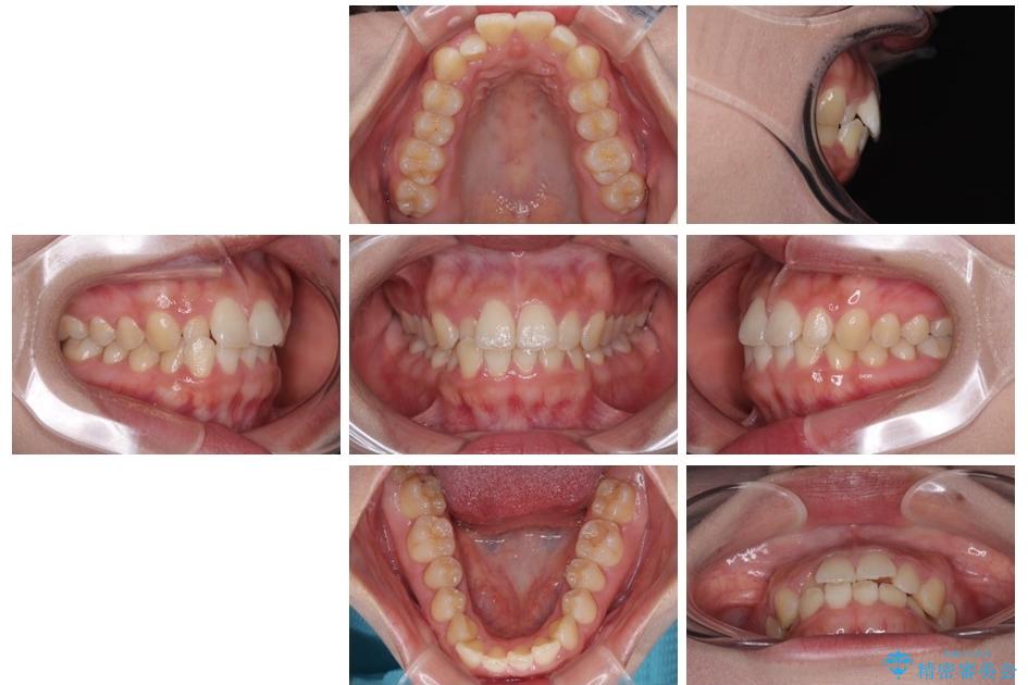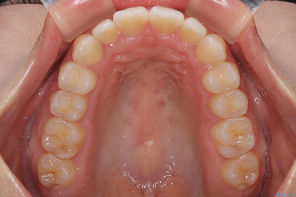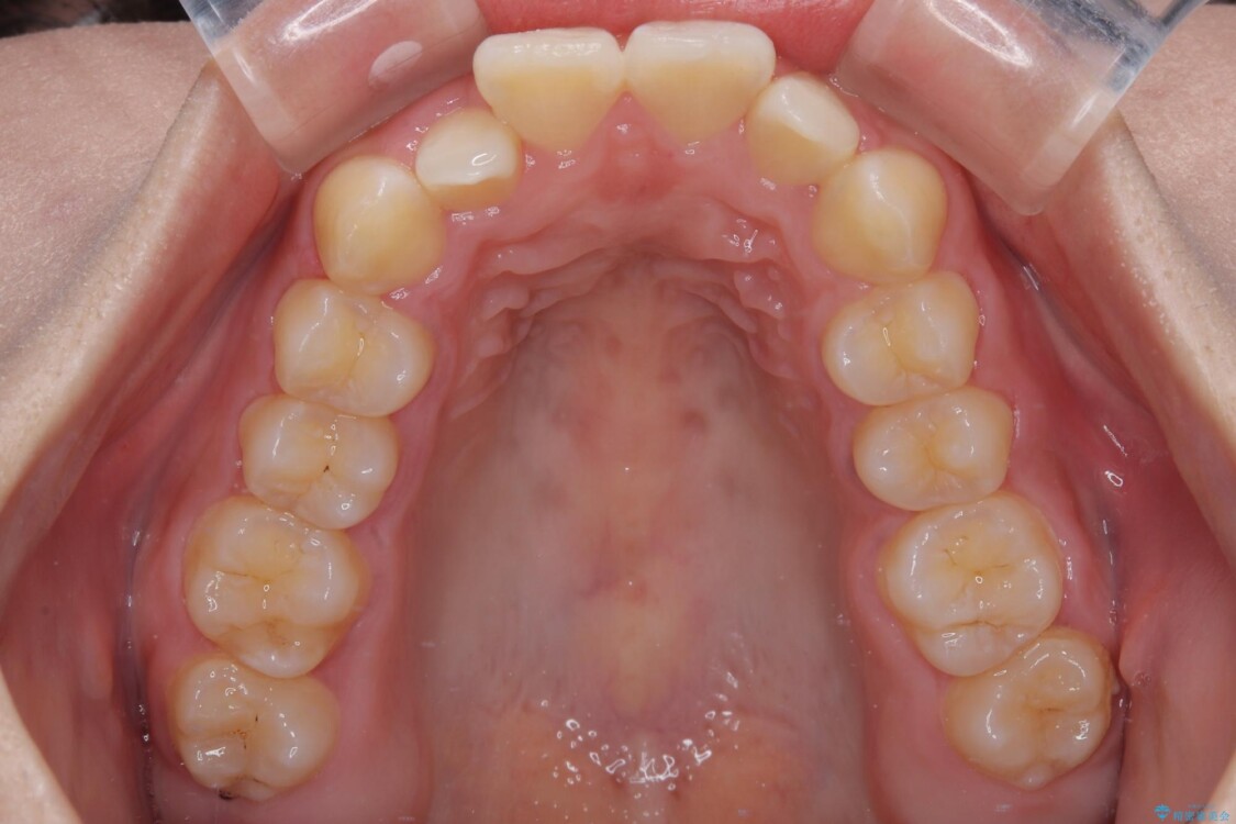 歯列アーチが狭くスペース不足により前歯がデコボコしている状態でした。見た目を改善しつつ、前歯を前方に突出させず、自然な笑顔を目指したいというご希望でした。