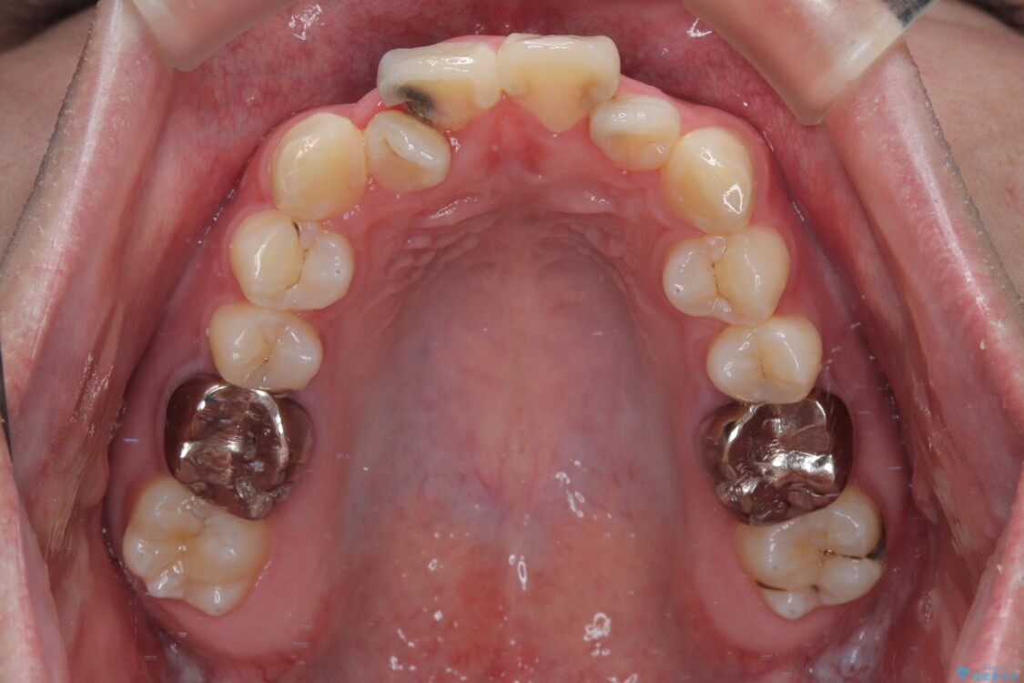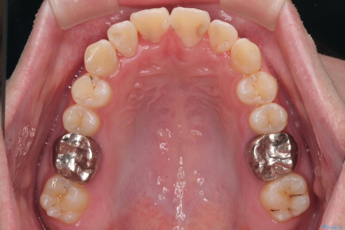 ・特に上顎の幅が狭いため、下顎の歯列も内側に入り込み、歯が並ぶスペースが不足していました。