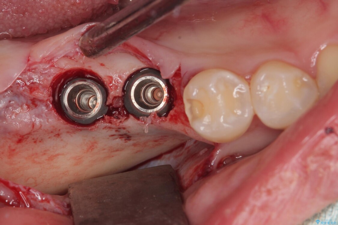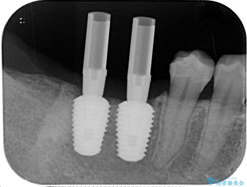 スペースが整った段階で、右下の第一大臼歯と第二大臼歯にインプラントを埋入。