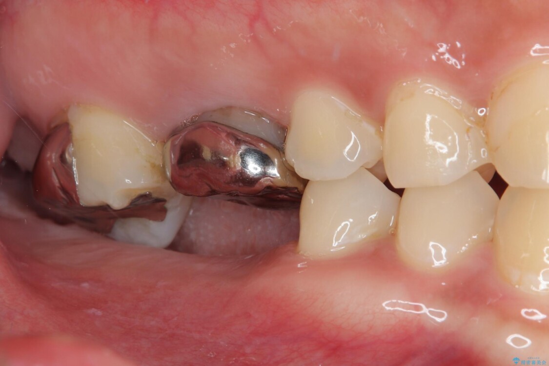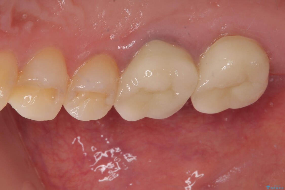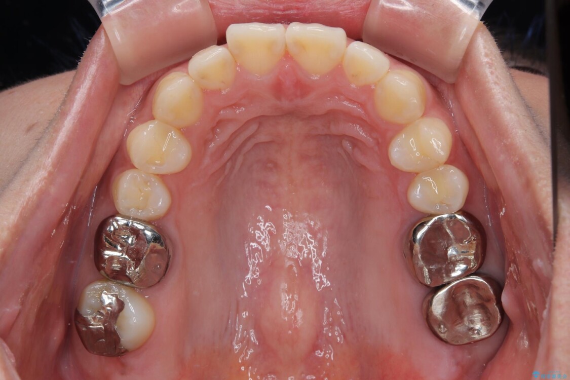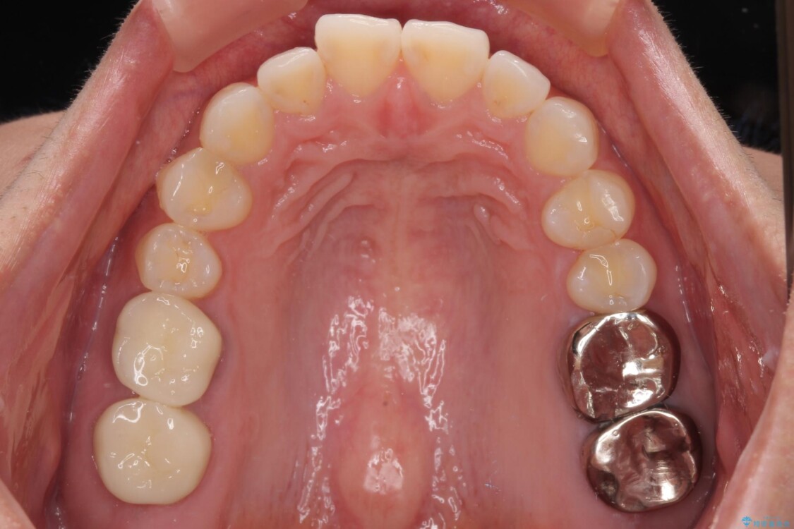 その後、挺出していた右上第一大臼歯と第二大臼歯に装着されていた銀歯についても、審美性と適合性の向上を目的に、オールセラミッククラウンにやり替えました。