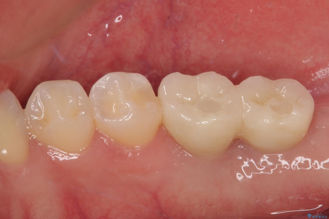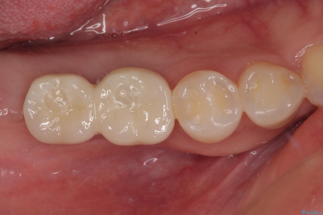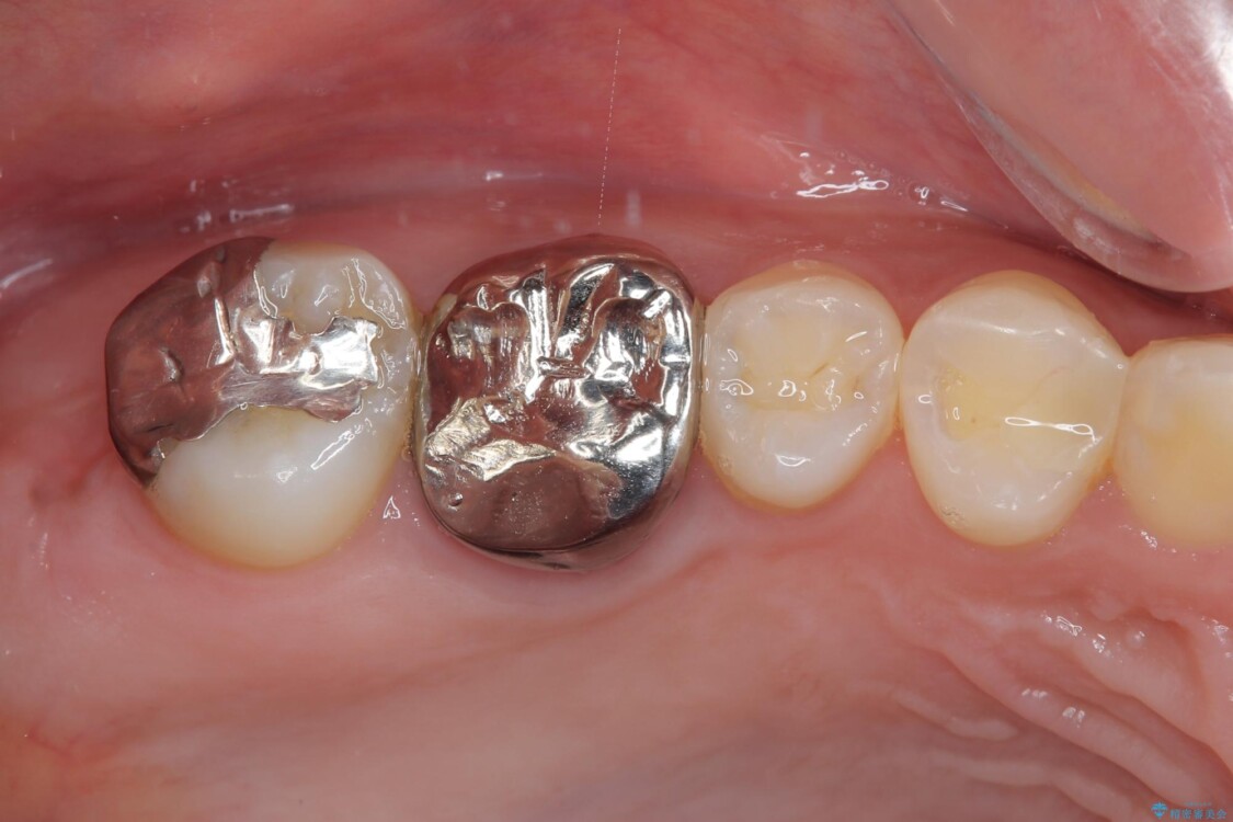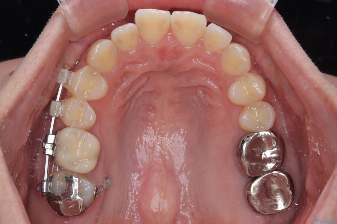 その後、挺出していた右上第一大臼歯と第二大臼歯に装着されていた銀歯についても、審美性と適合性の向上を目的に、オールセラミッククラウンにやり替えました。