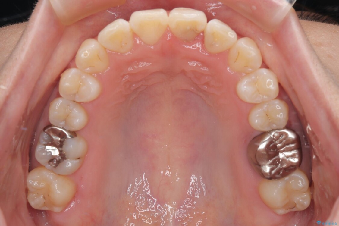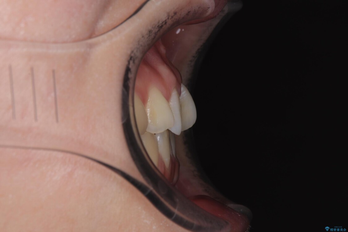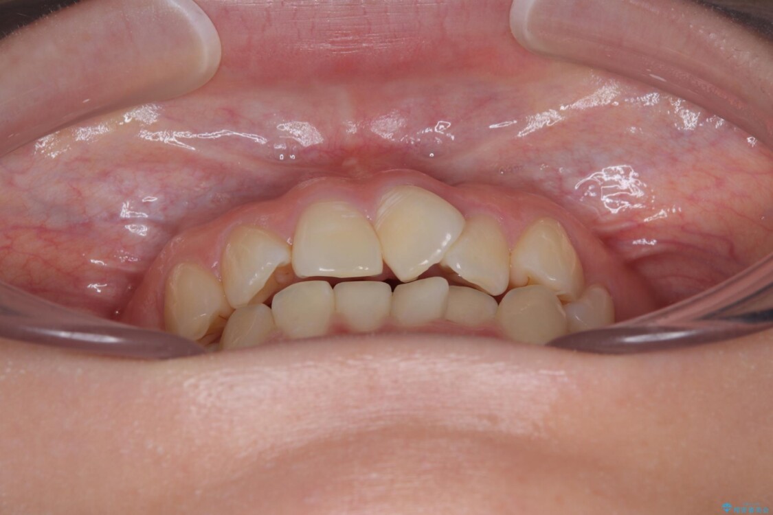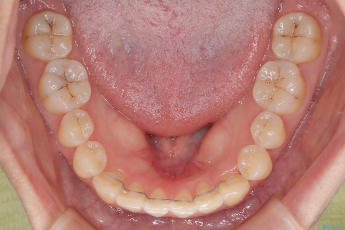 また、上顎前歯の重なっていた部分にはむし歯が見つかり、治療中に適切な処置を行っています。