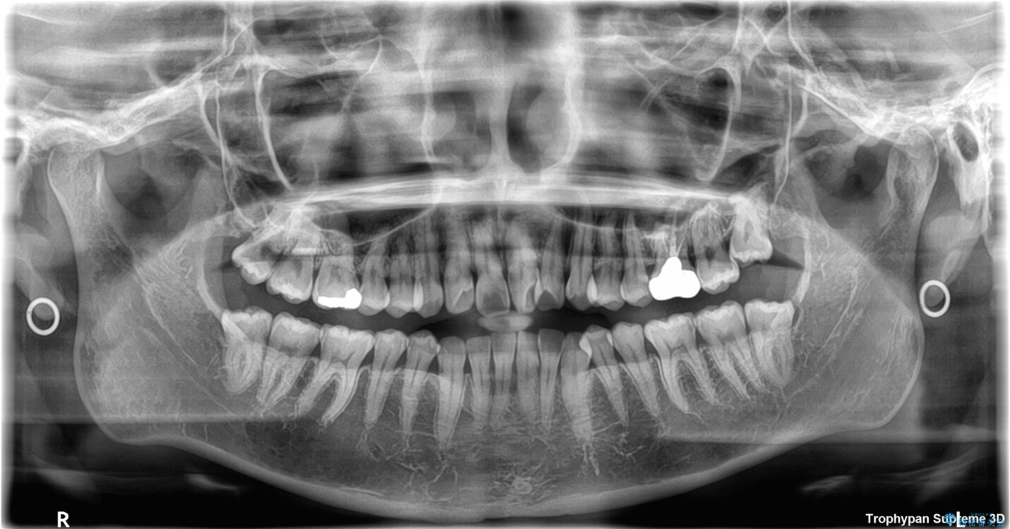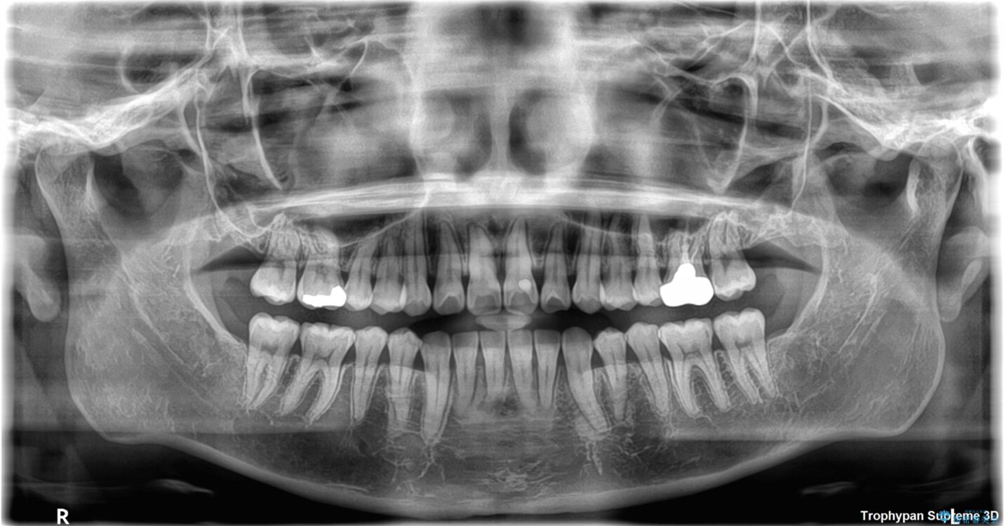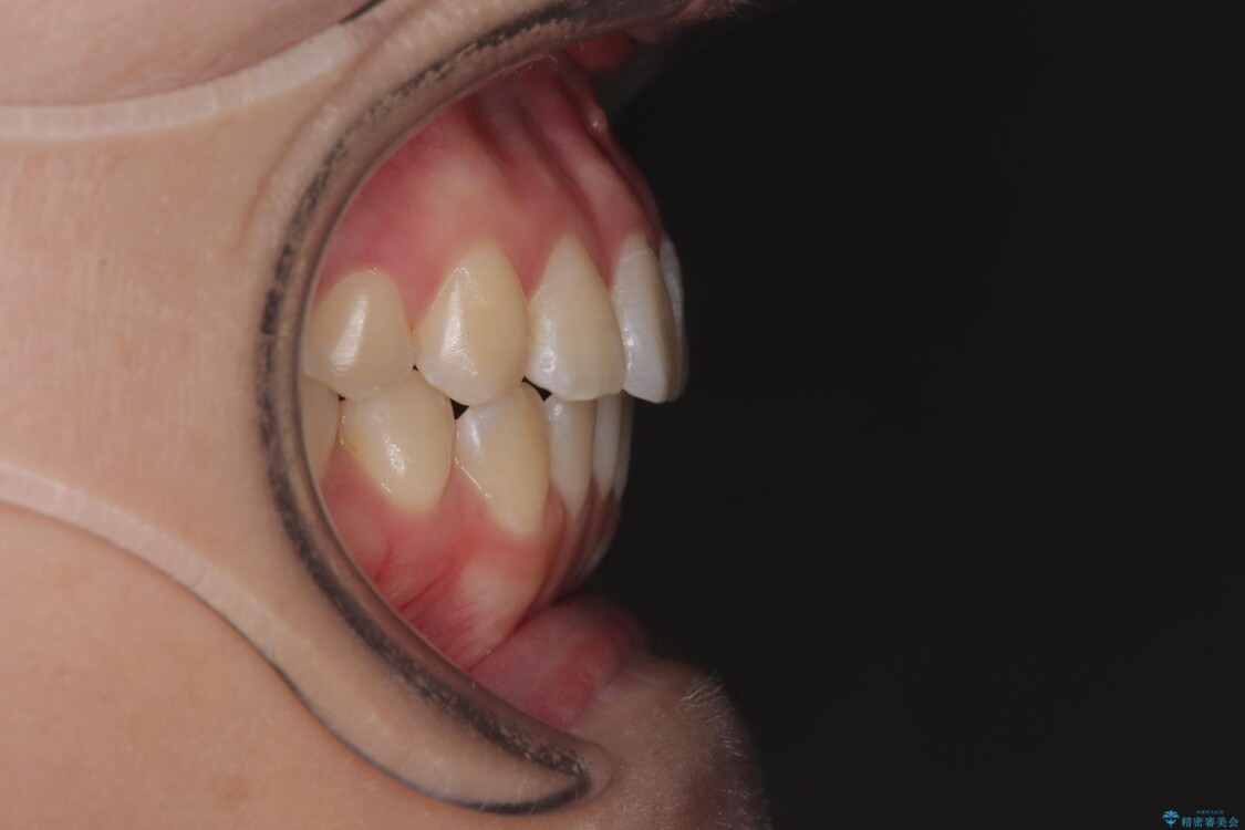 また、上顎前歯の重なっていた部分にはむし歯が見つかり、治療中に適切な処置を行っています。