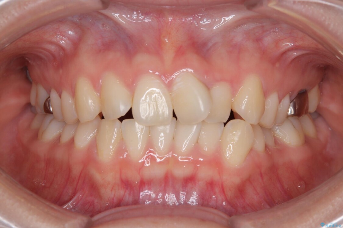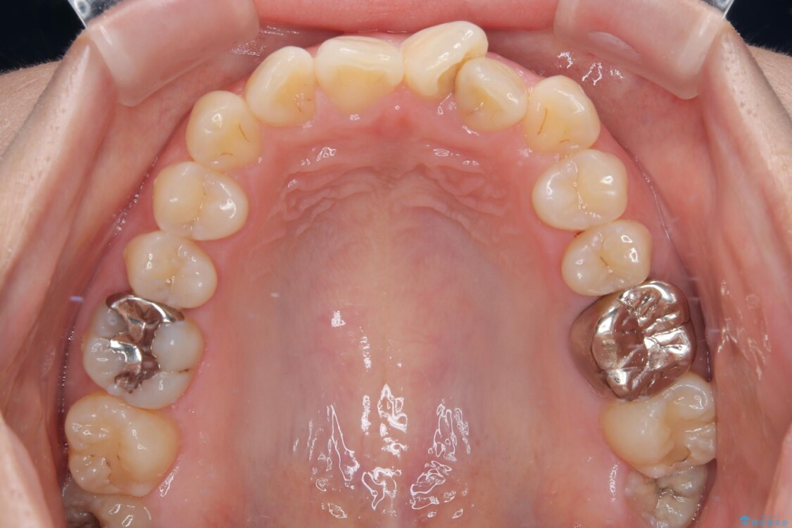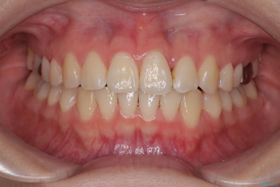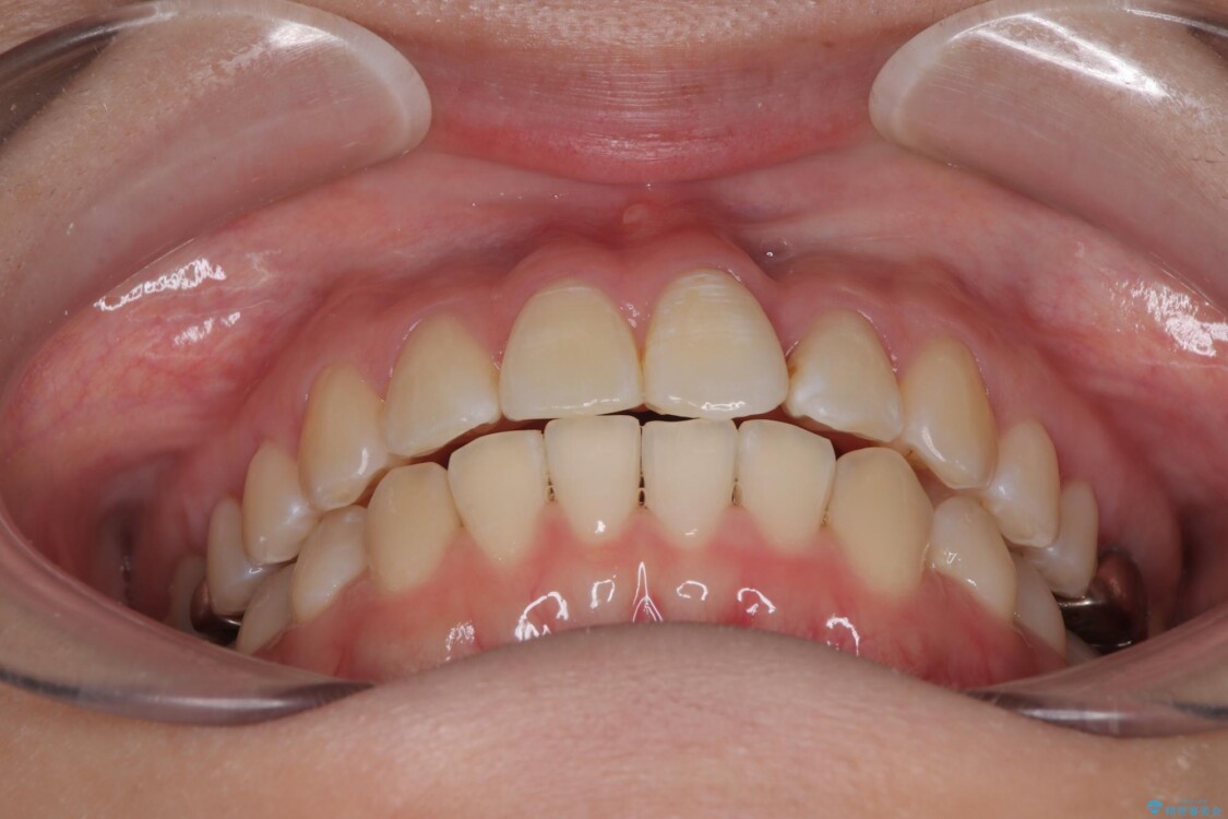 特に上の前歯にはねじれや重なりがあり、審美的にも清掃性にも影響している状態でした。