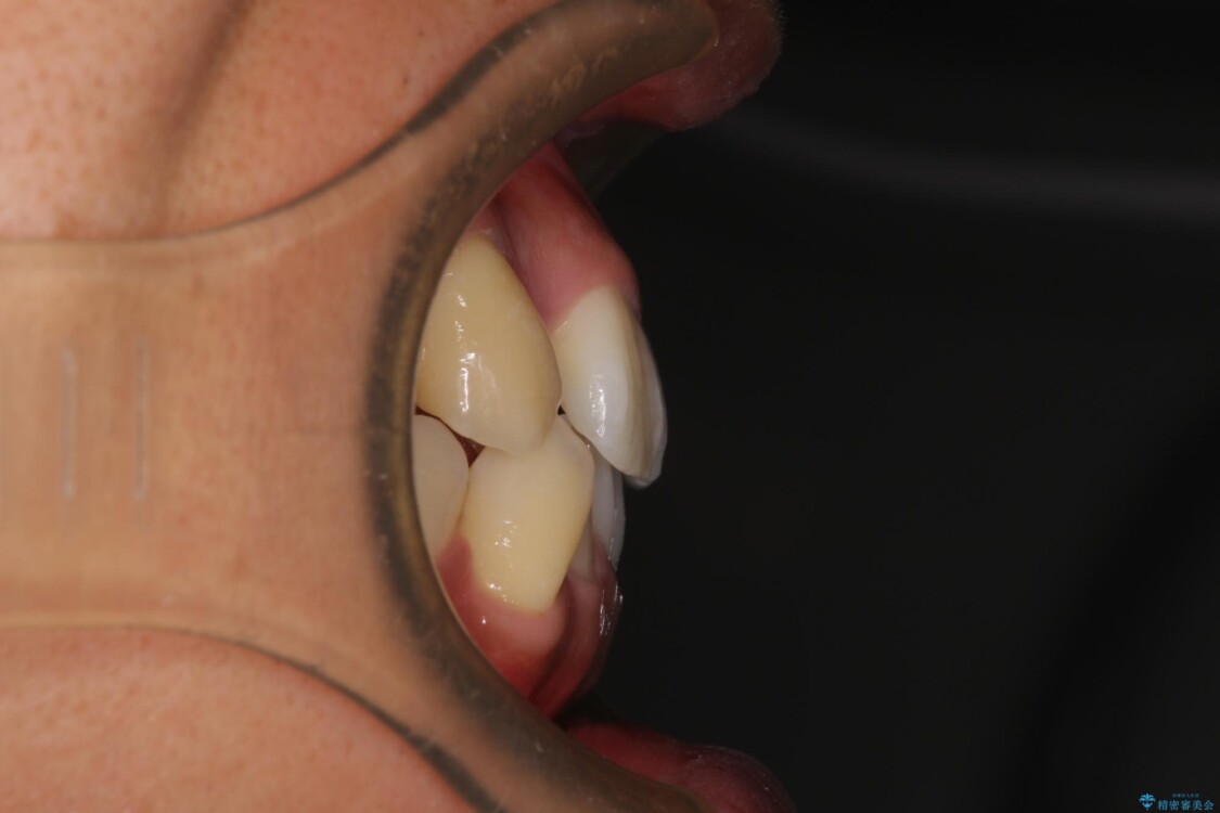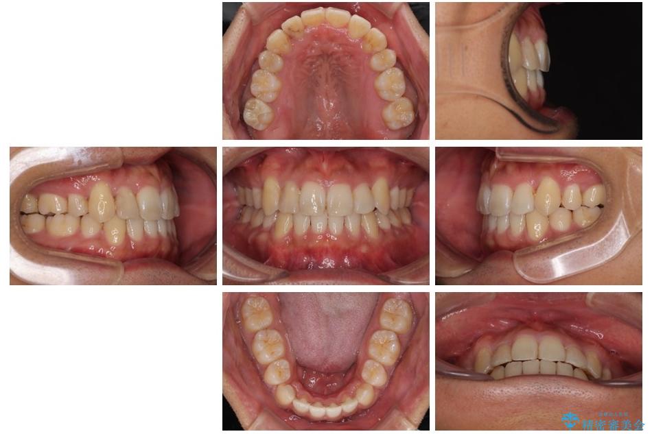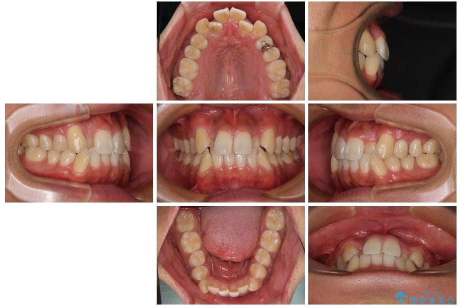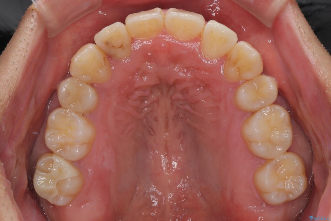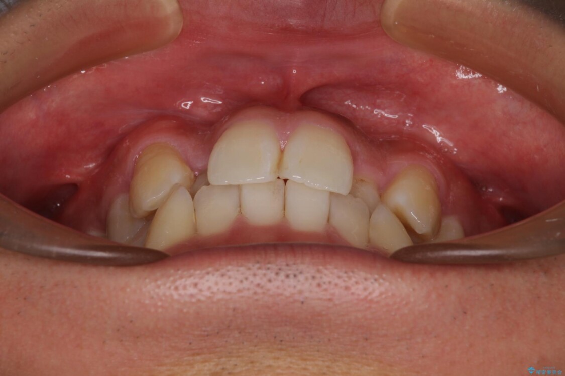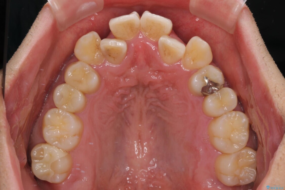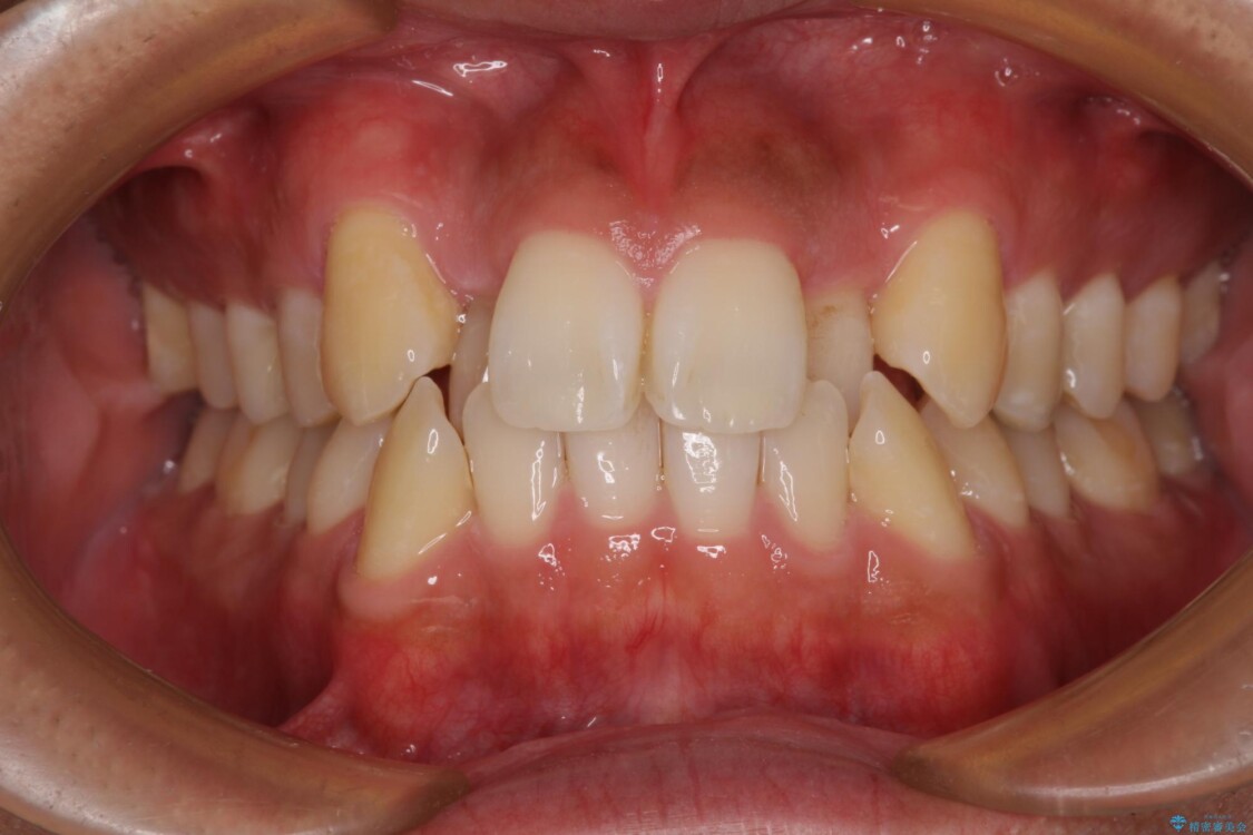 上下の前歯部に強い叢生(ガタガタの歯並び)があり、そのまま歯を並べると出っ歯になってしまう可能性がありました。