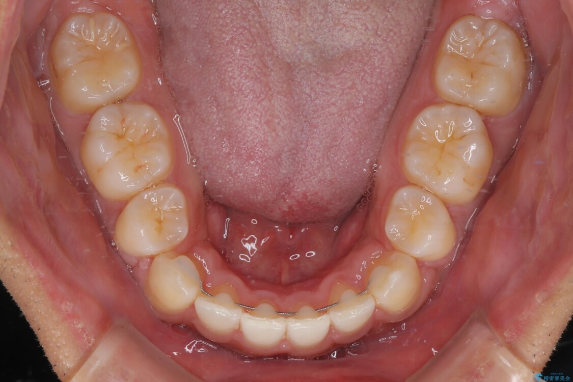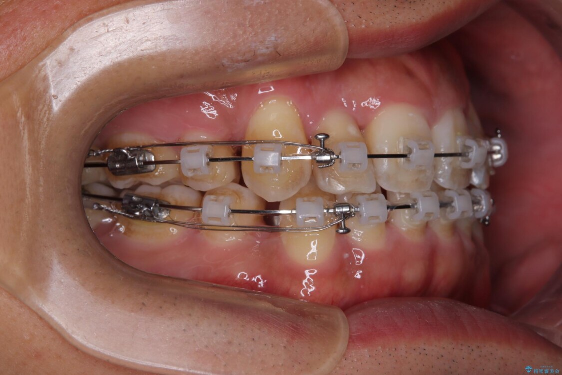 矯正装置は、審美性と費用面のバランスを考慮して、プラスチックブラケットとメタルワイヤーを使用しました。